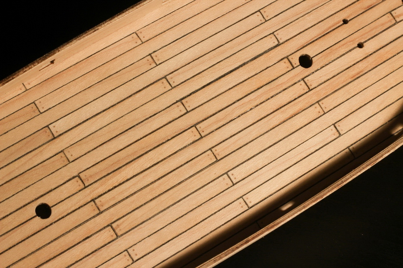 Sławku w planach ani w instrukcji nie ma tam kołków. Wiem, że wg teorii powinny być, ale nie chciałem przesadzić z kołkami na głównym pokładzie, zostawiając pokład rufowy całkowicie bez kołków.