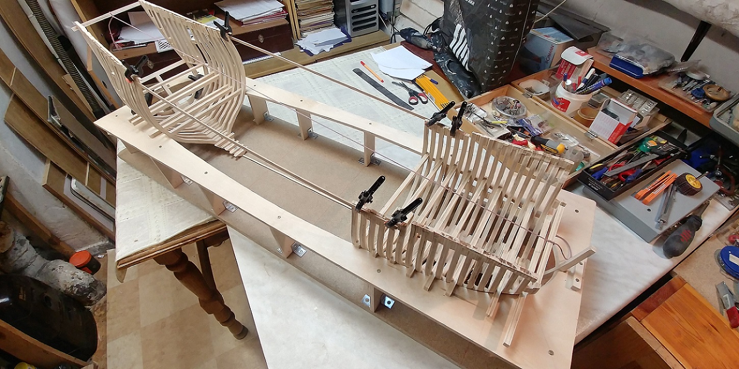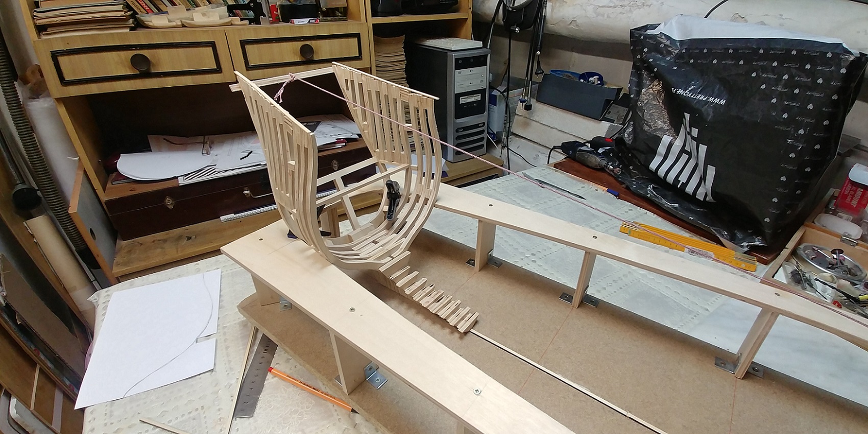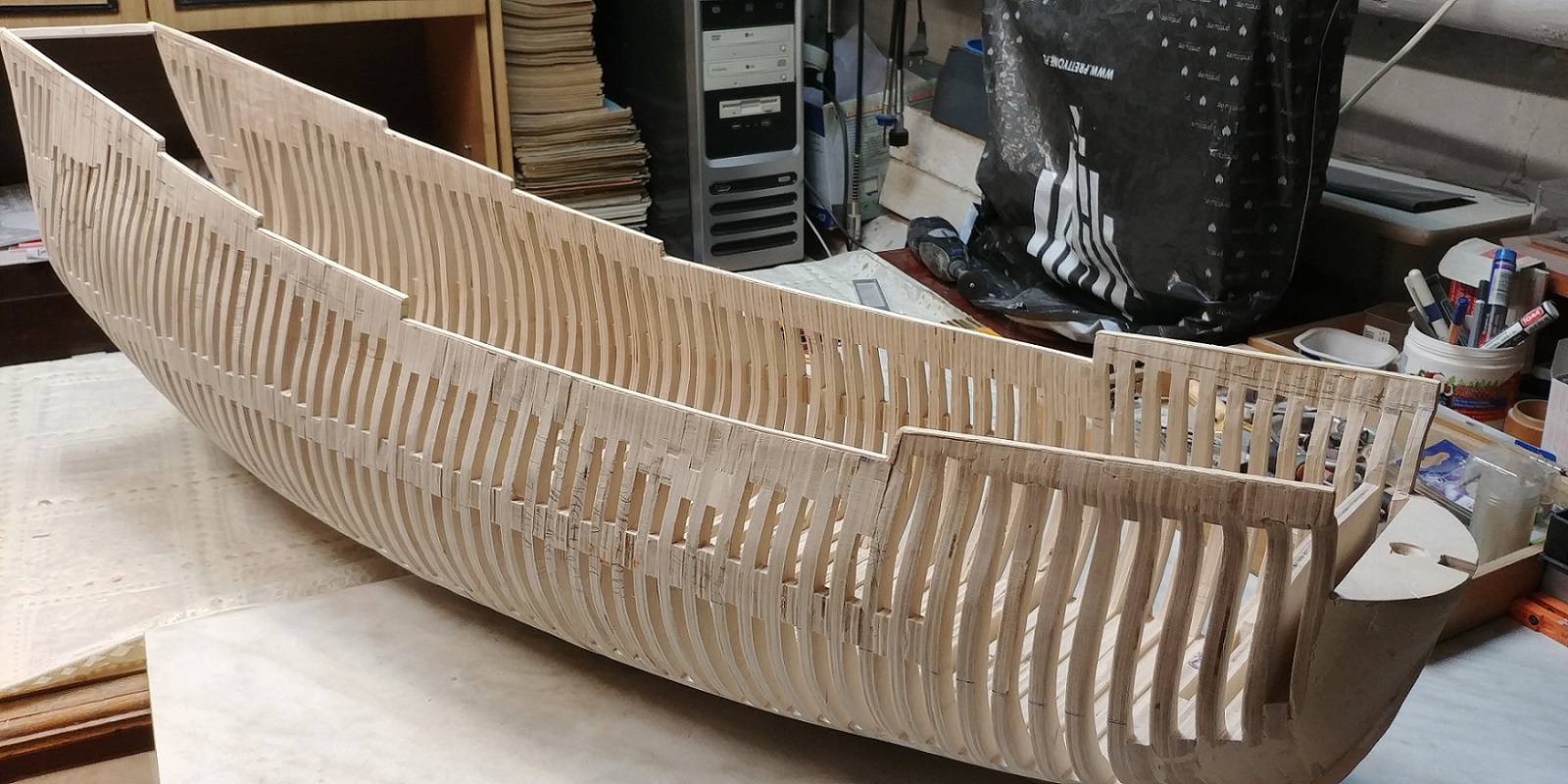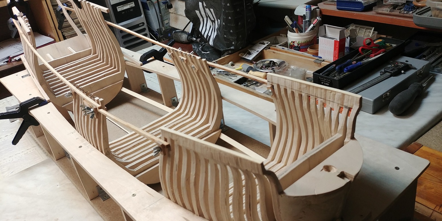 Nowy projekt i nowe wyzwanie.Szkielet sklejkowy gr.8 mm.co pasuje w/g projektu bo grubość wręg też taka sama.