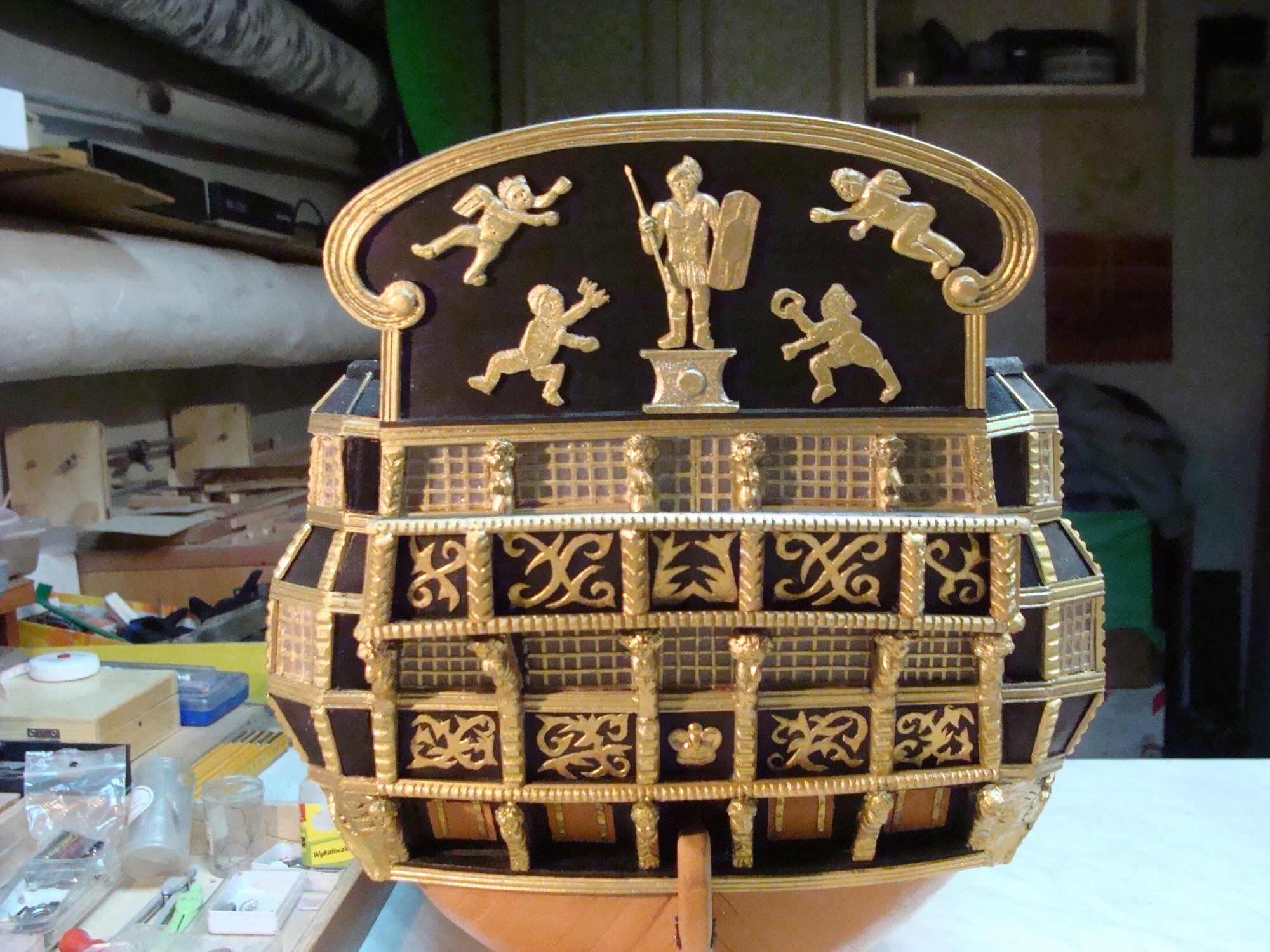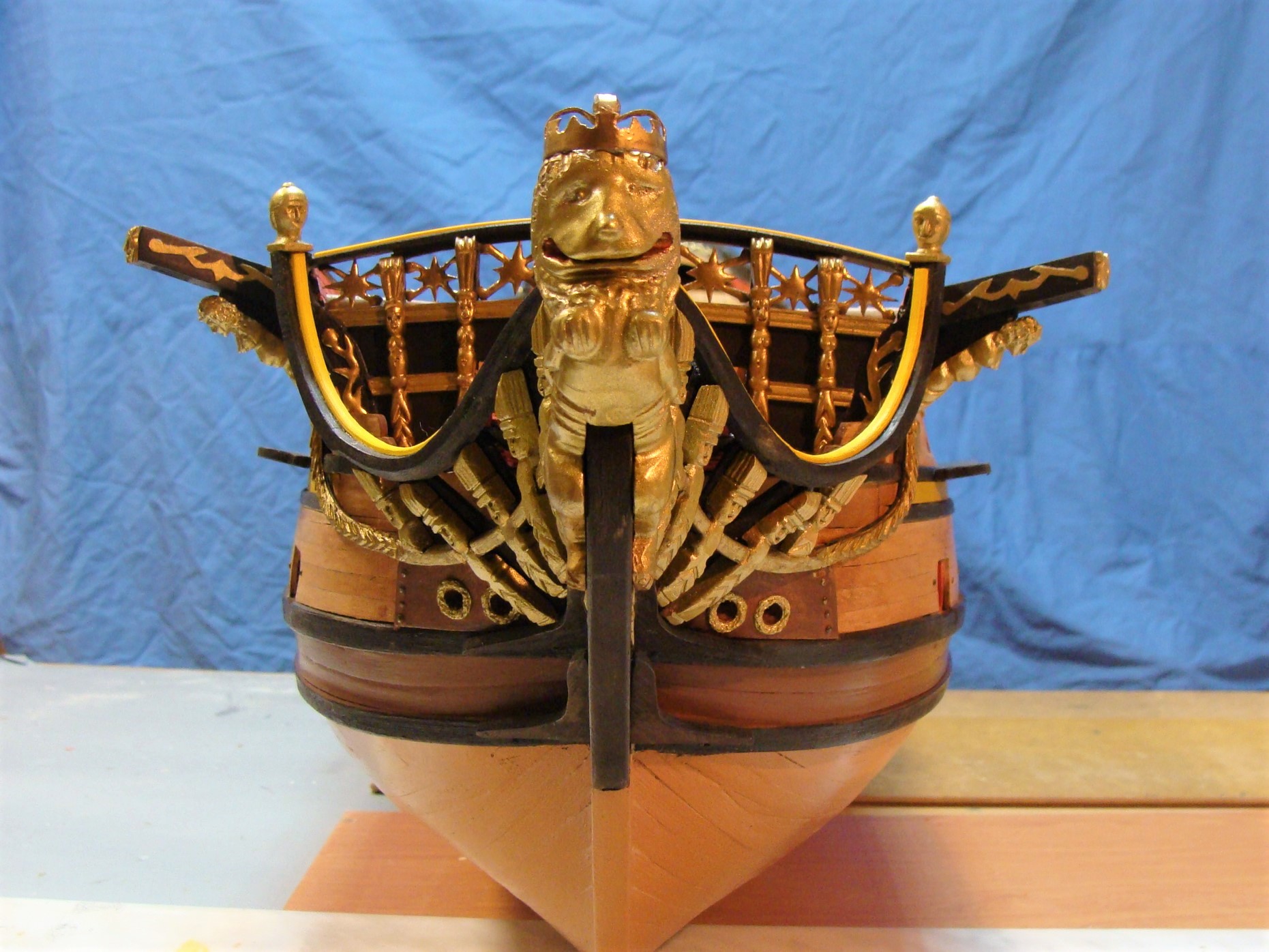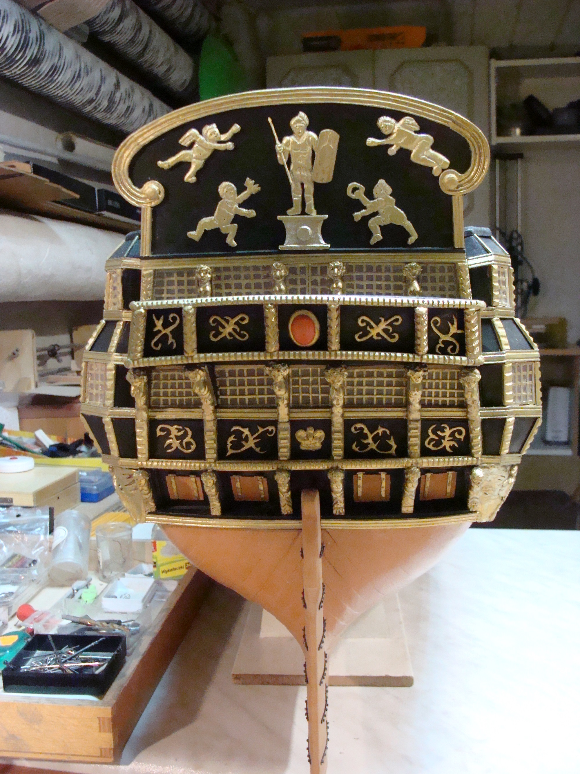 .Zostały jeszcze rzeżby pana i niewolnika po bokach, jakieś oz dupki i pawęż.Pozostawiam to własnej inwencji.Nie wzoruję się całkowicie
