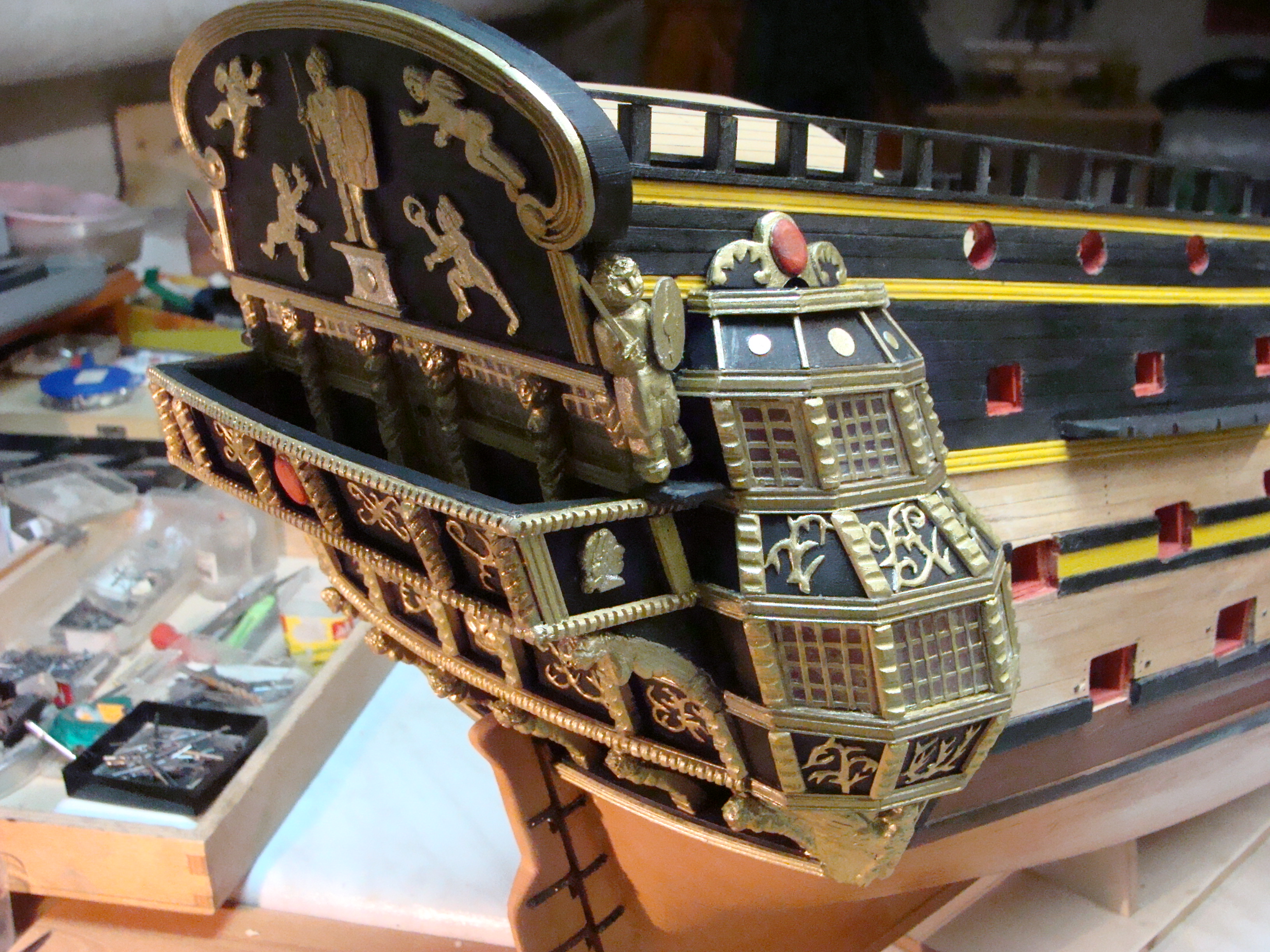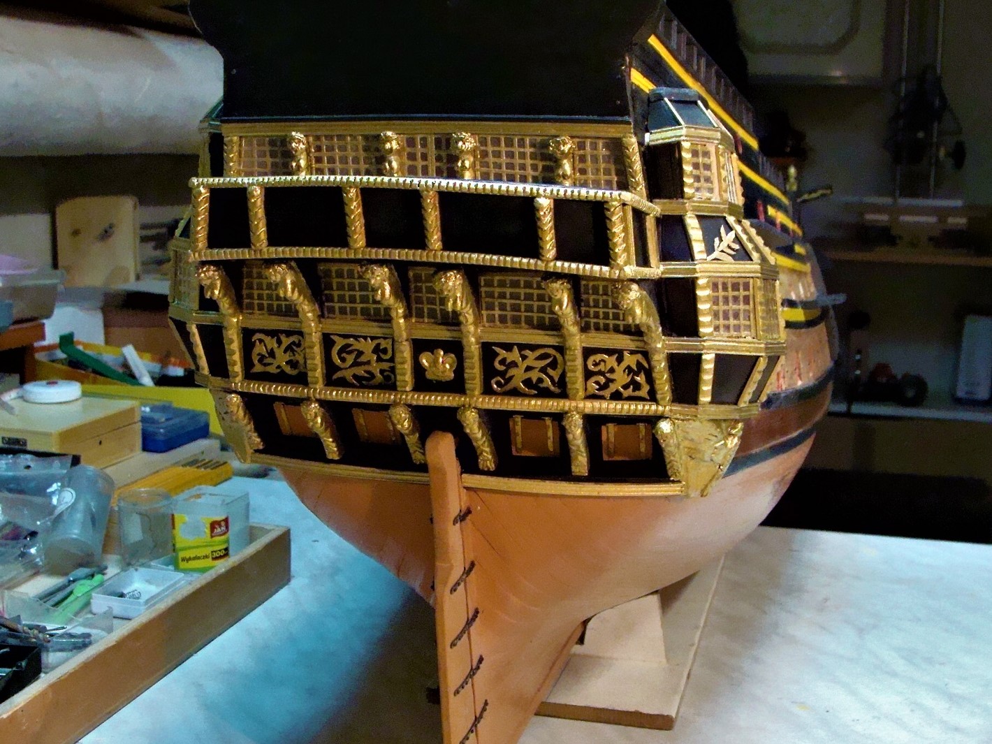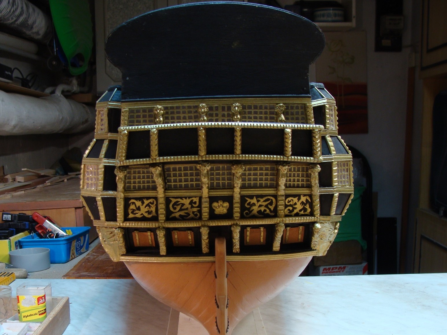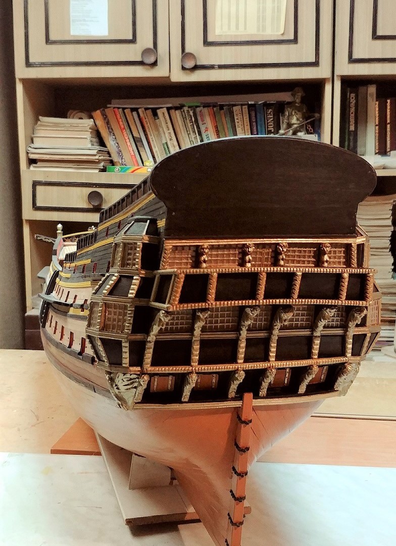 .Zostały jeszcze rzeżby pana i niewolnika po bokach, jakieś oz dupki i pawęż.Pozostawiam to własnej inwencji.Nie wzoruję się całkowicie