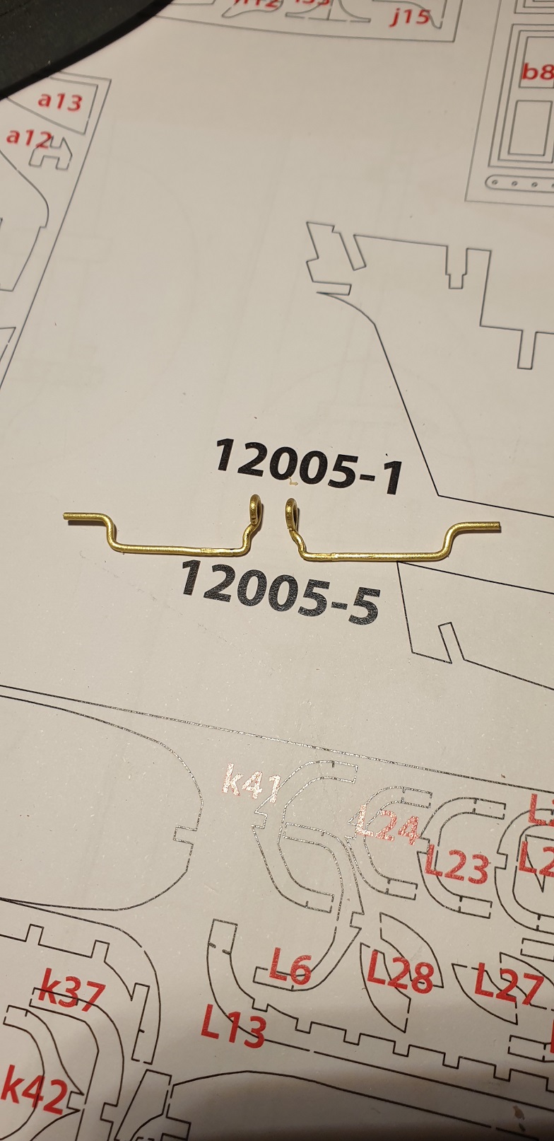 Windlass to po polsku znaczy - Kołowrót. Czyli przypomina on swoją funkcją pionowy kabestan (capstan po ang.) Różnica tylko w tym, że kołowrót leży w poziomie. Nie poprawiaj tych korb z drutu - zamontowałeś je prawidłowo - z jednej strony korba jest w pozycji górnej, a jednocześnie ta druga powinna być w pozycji dolnej - grupki marynarzy (dwóch, trzech po każdej stronie) obracają tymi korbami naprzemiennie, wciągając kotwicę na linie/łańcuchu, który się nawija na bęben kołowrotu.