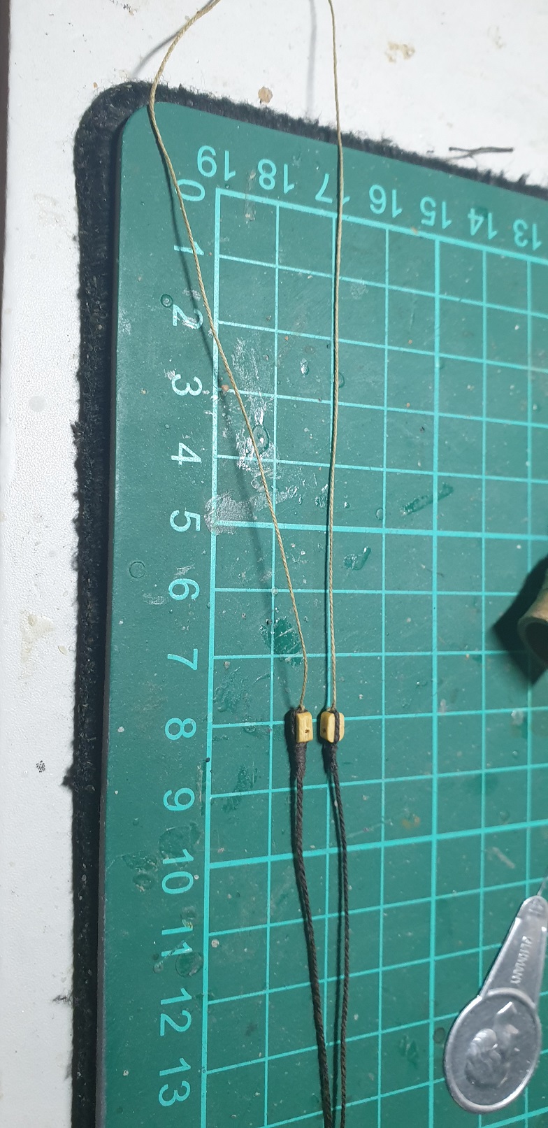Najpierw robiłem ucho na wymierzonej linie potem drugie na drugim kawałku liny u mnie miał 42 mm