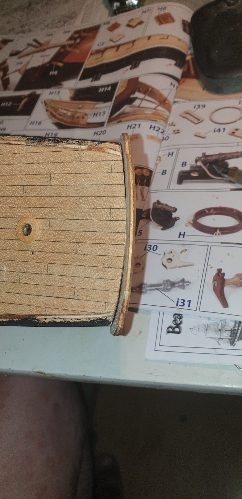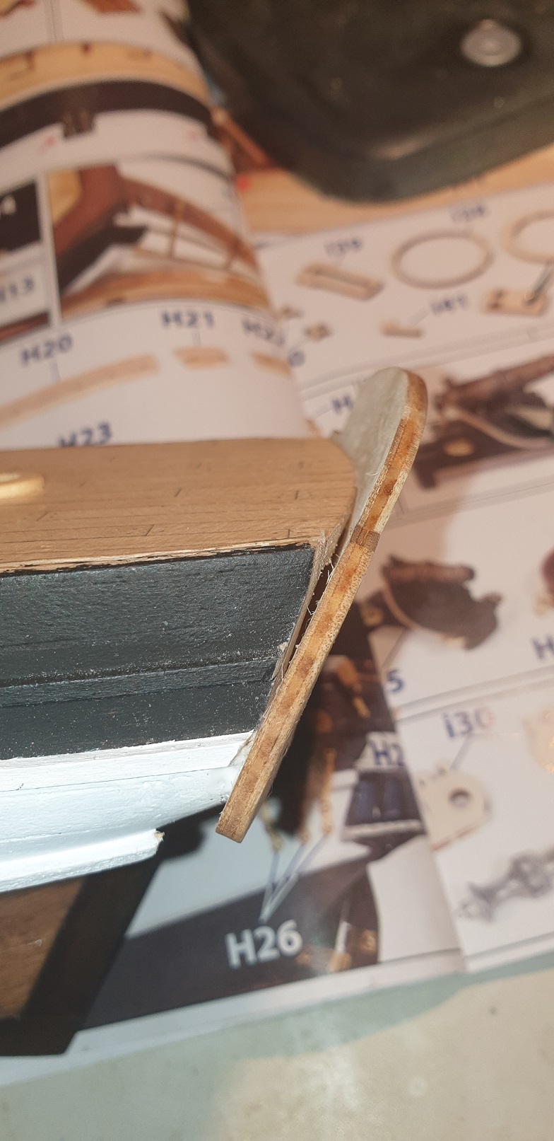 Wyszedł tu mały prostokątny uskok ,nie wiem czy powinien być zeszlifowany żeby łagodnie przechodził do sklejki rufowej ?