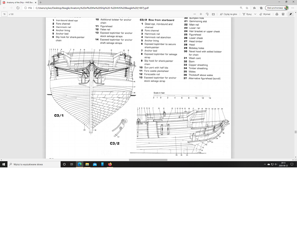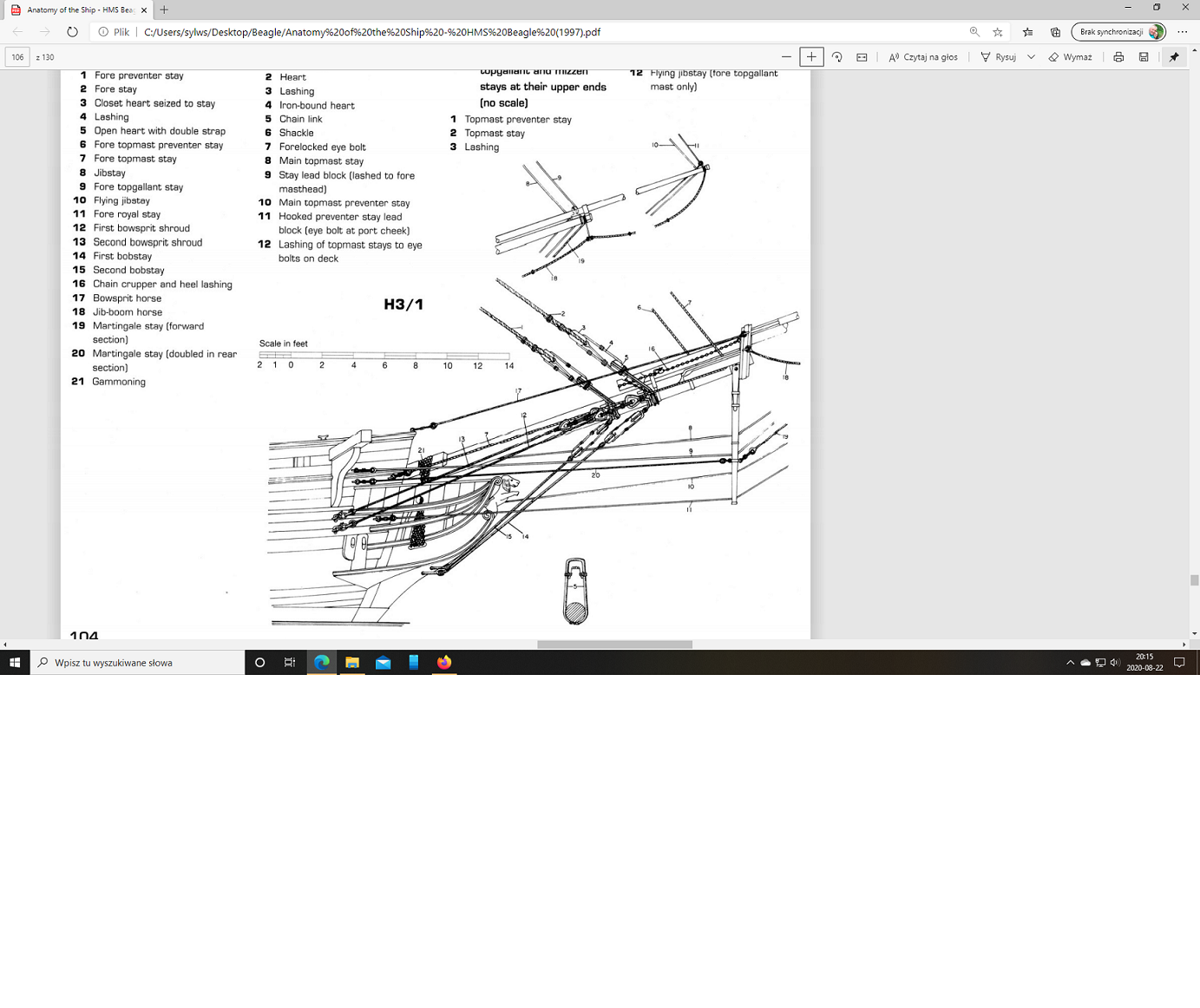 Układ knag na dziobie tez w instrukcji inny niż w książce