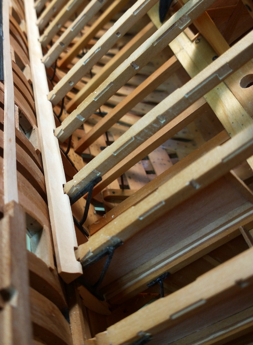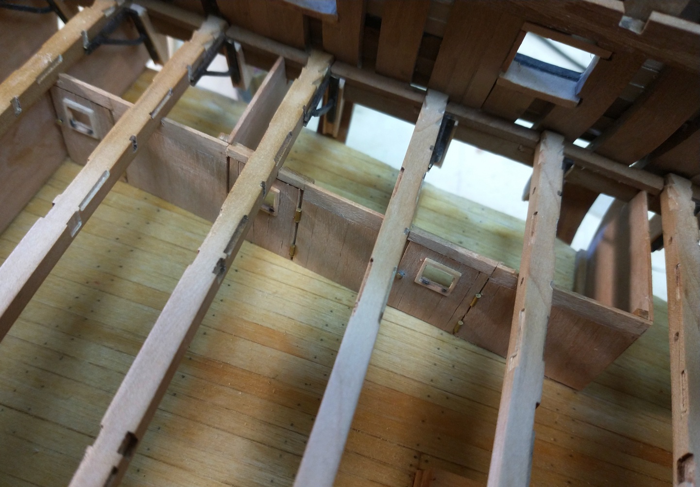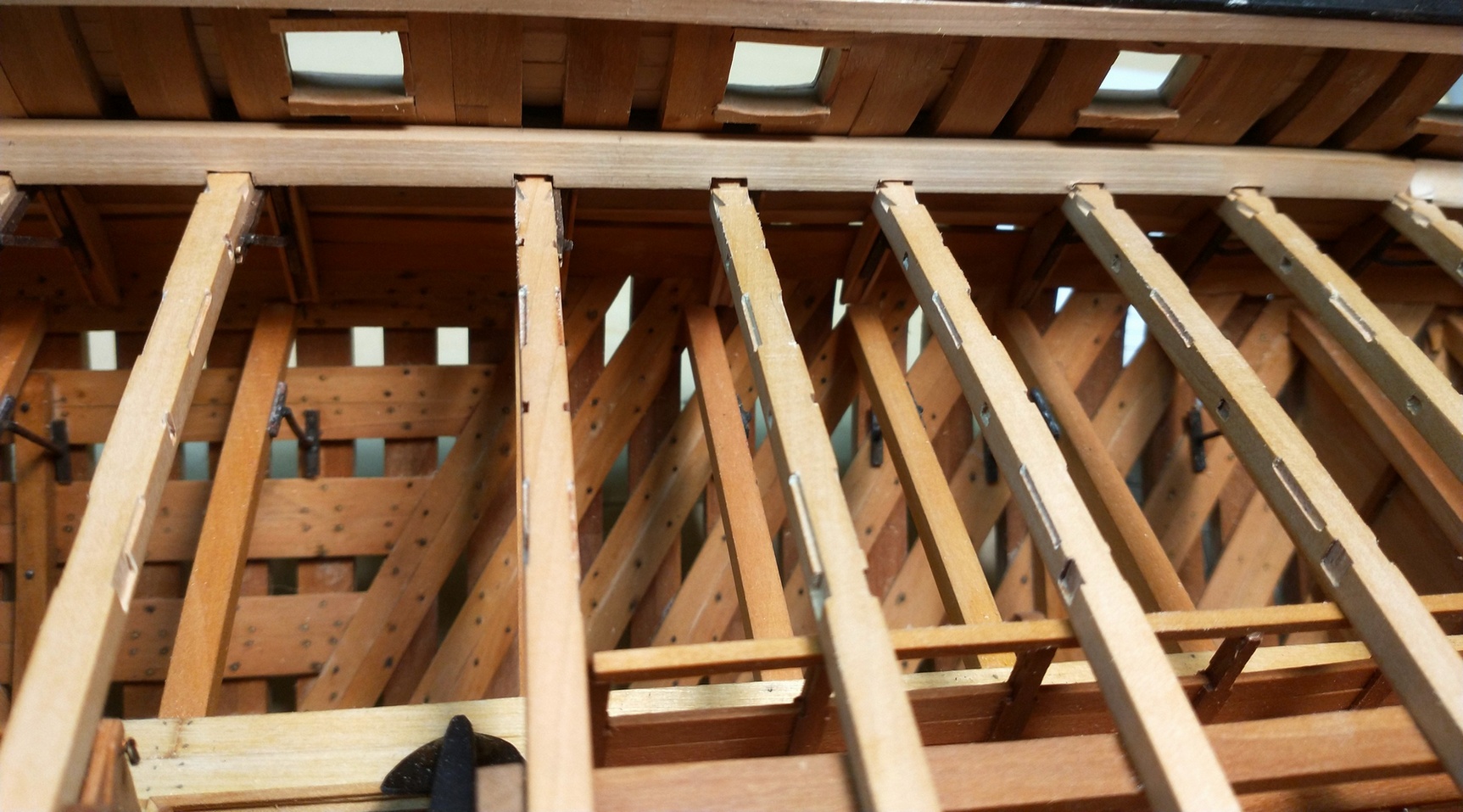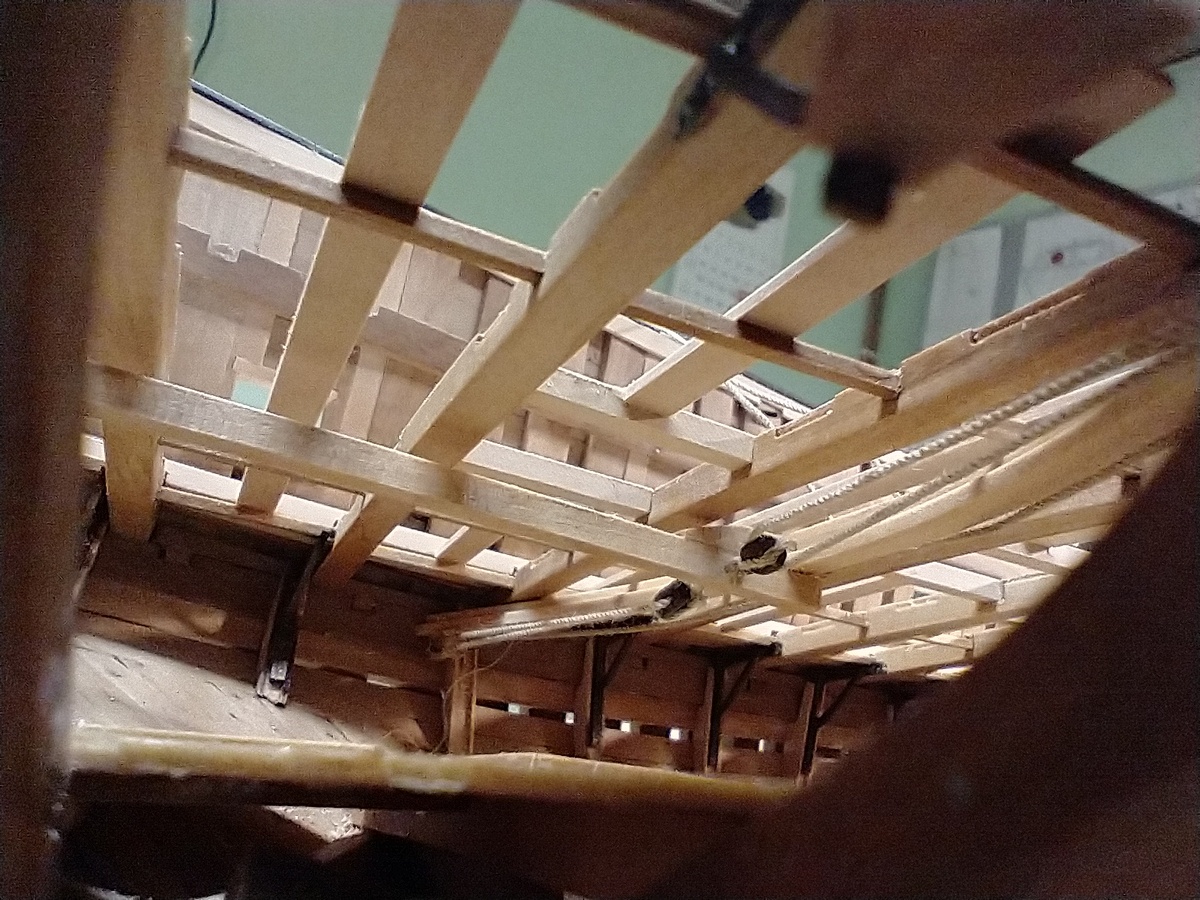 Pokleiłem więźbę pokładu głównego. Niezła plątanina, ale praca nad nią, to czysta przyjemność.