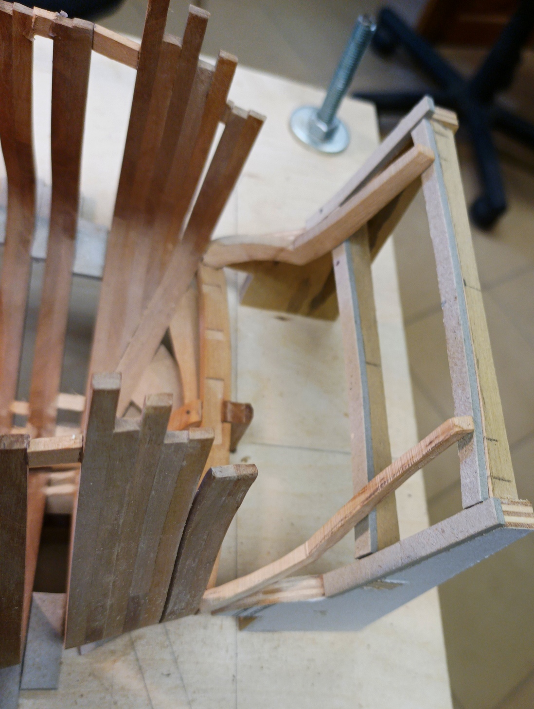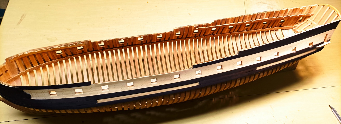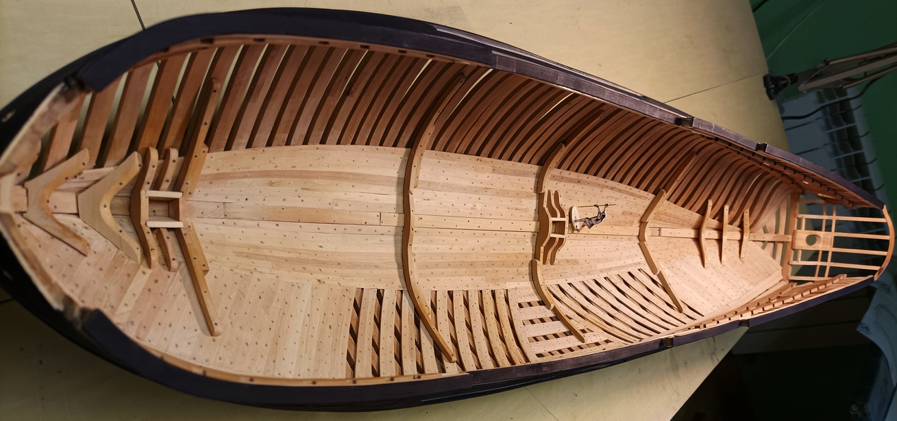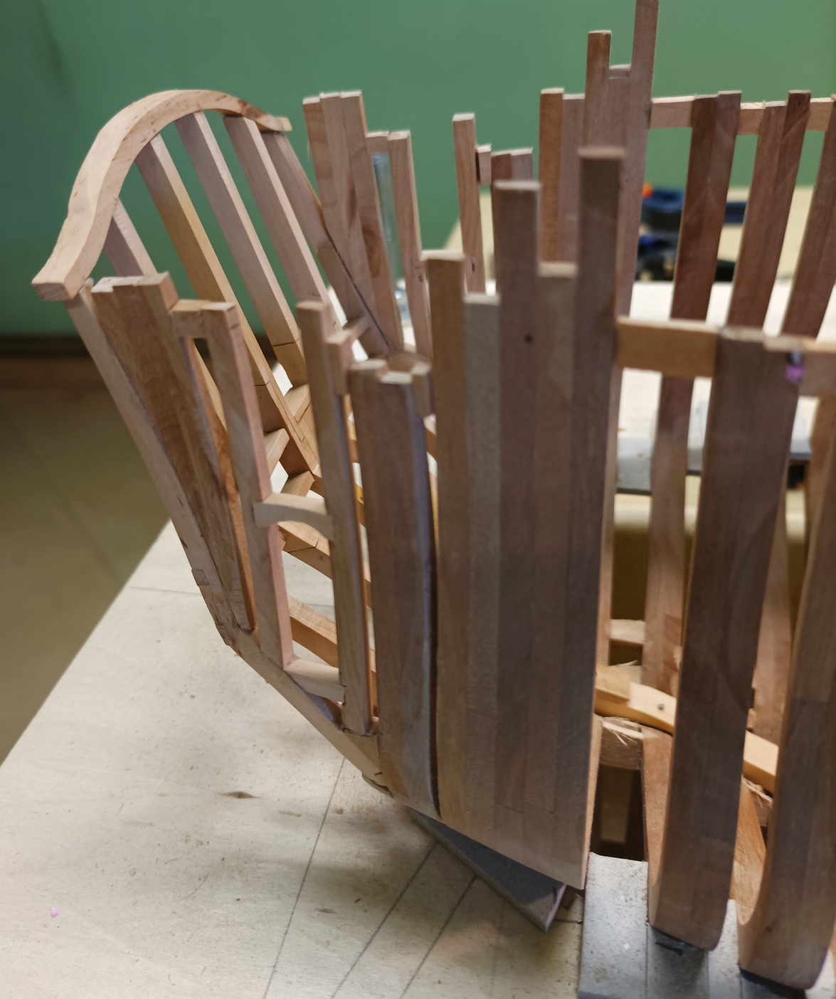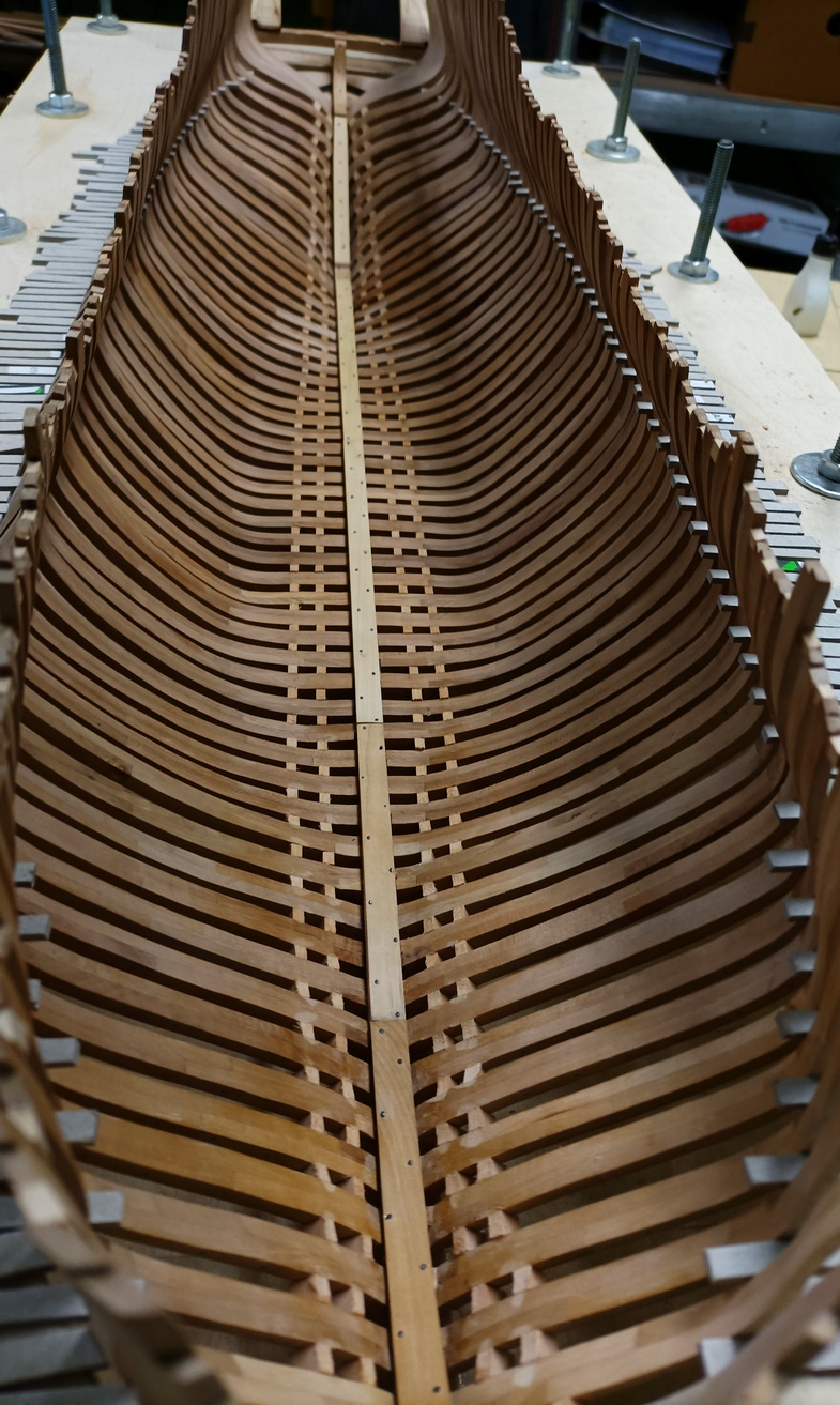 Po żmudnym kołkowaniu poszycia, przyszedł czas na wzmocnienia konstrukcji kadłuba, wraz z gniazdami masztów.