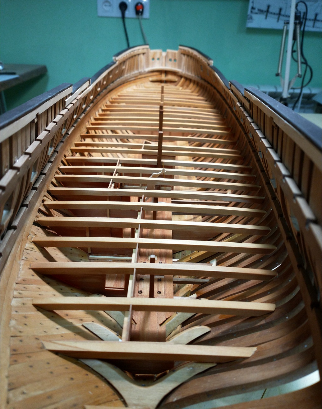 To już ostatnie ścianki pod pokładem. Sporo było przy nich pracy, ale to nie nowość. Już się przyzwyczaiłem, że każdy etap prac przy takim modelu, to maraton.