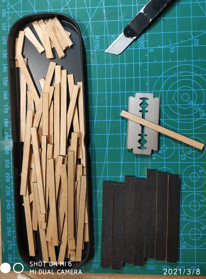 Pokład został pokryty klepkami oklejonymi czarnym papierem imitującym uszczelnienia: