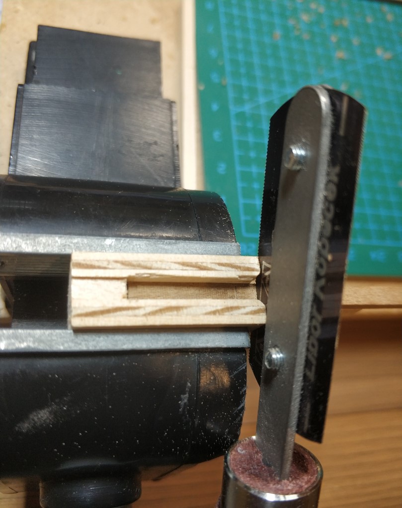 Elementy składowe kabestanu, gretingów i schodków zawarte były w zestawie. Pozostało wycięcie pachołków do barierek i nagelbanku. Listwa 3x3 mm została najpierw nacięta po obwodzie, a następnie odcięta po uprzednim usunięciu kołka dystansowego z wzornika. A dalej nożyk ...