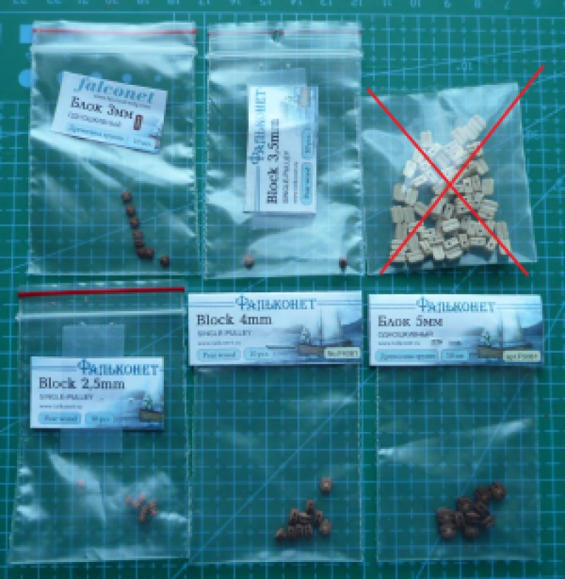 Bloczki z zestawu - wszystkie w jednakowym rozmiarze - odłożyłem na bok i zastosowałem bloczki firmy "falconet" w różnych rozmiarach:
