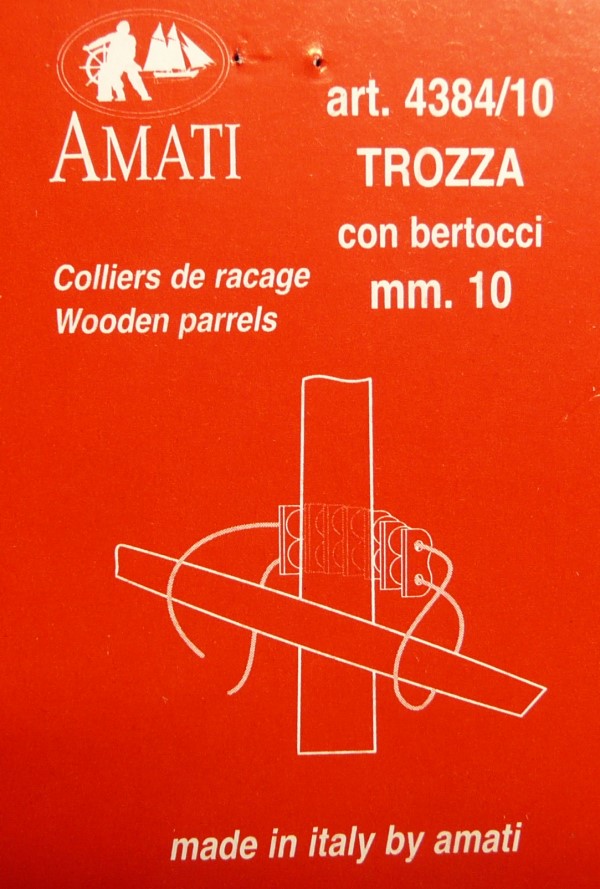 Żagiel podbukszprytowy (waterfok) w planach Amati był podwiązany na stałe pod bukszprytem, brasy, szoty i to wszystko. Dodałem raksy, topenanty i gejtawy:
