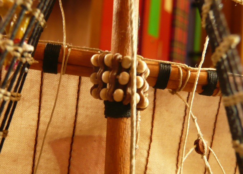 W przypadku foka, mocowanie reji do masztu zostało wykonane przy użyciu jednorzędowej raksy