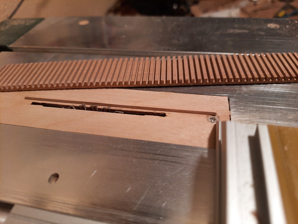 Ustaw swoja listewke pionowo opierajac ja na tym ograniczniku i przesun wzdluz stolu, nacinajac listewke w ten rowek. (Uwazaj na palce!)