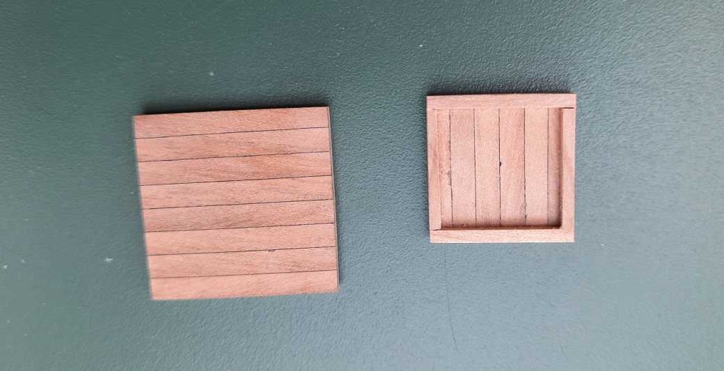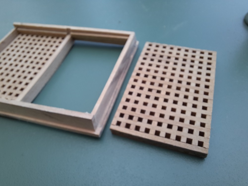 Przyszła kolej na pokład główny ale żeby prawidłowo wytrasować wszystkie otwory muszę wykonać gretingi, pokrywy luków i gniazda masztów. Gretingi zrobiłem klasyczną metodą z grzebieni wyciętych na pile tarczowej o grubości 1,6 mm. Pierwsze podejście było nieudane bo wcięcia były za płytkie. Za drugim razem uzyskałem już przyzwoity efekt. Gretingi oprawiłem w ramki by wystawały jedynie 2,5 mm nad poziom pokładu. Z pokrywami luków mam mały dylemat. Generalnie na jednostkach tej wielkości i mniejszych wszystkie otwory w pokładzie były zabezpieczone kołnierzem zabezpieczającym by woda nie wlewała się do wnętrza i dopiero na ten kołnierz nakładana jest pokrywa. Według Shipyardu tak nie jest ale ich pokrywy są bardziej efektowne. A może zrobię w dwu wersjach i będzie można zmienić po przymiarce na odeskowanym pokładzie. Niczym proboszcz Kozioł z Wilkowyj (ten z Rancza) przy pomocy pędzelka i sprężonego powietrza z jamy ustnej oczyściłem z kurzu pierwsze dwie armaty i zabezpieczyłem taśmą malarską. Teraz mogłem przykryć pokład sklejką 0,5 mm. Jak to jest pokazują zdjęcia. Janek