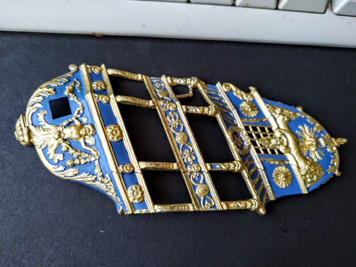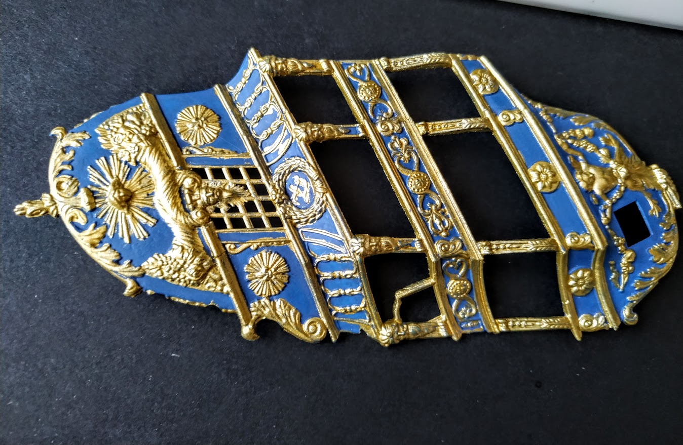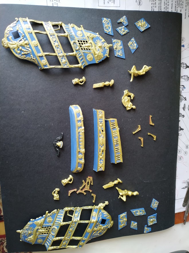 Dość długo mnie tu nie było ale się nie obijałem. Wykonano w komplecie ruf i ster. Doszły do tego elementy jakich nie przewidywał producent, takie jak otwarte balkony, motto "słonecznego Ludwika z tyłu rufy, ozdoba steru, dodatkowe ozdoby górnego pokładu rufowego i inne elementy, o których bedzie dalej...