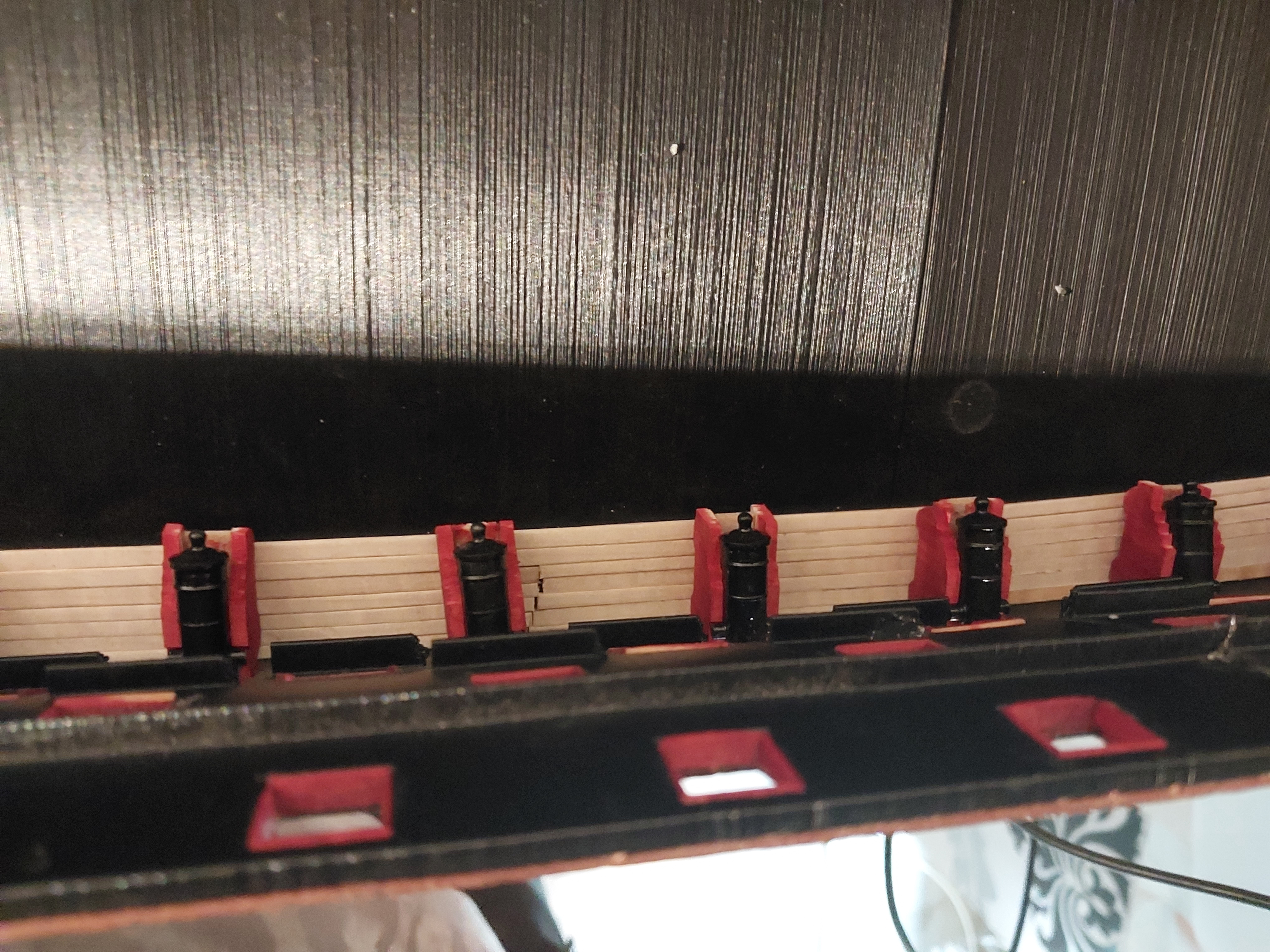 Zastanawiam się czy powinienem zamontować drip shields(okapniki?) + furty. Boję się, że budując(później), nieumyślnie uderzę i uszkodzę niektóre z nich. Z drugiej strony instalowanie ich po olinowaniu, gdy armaty są przyklejone, może być trudne i wymagające. Nie wiem, co o tym sądzicie?