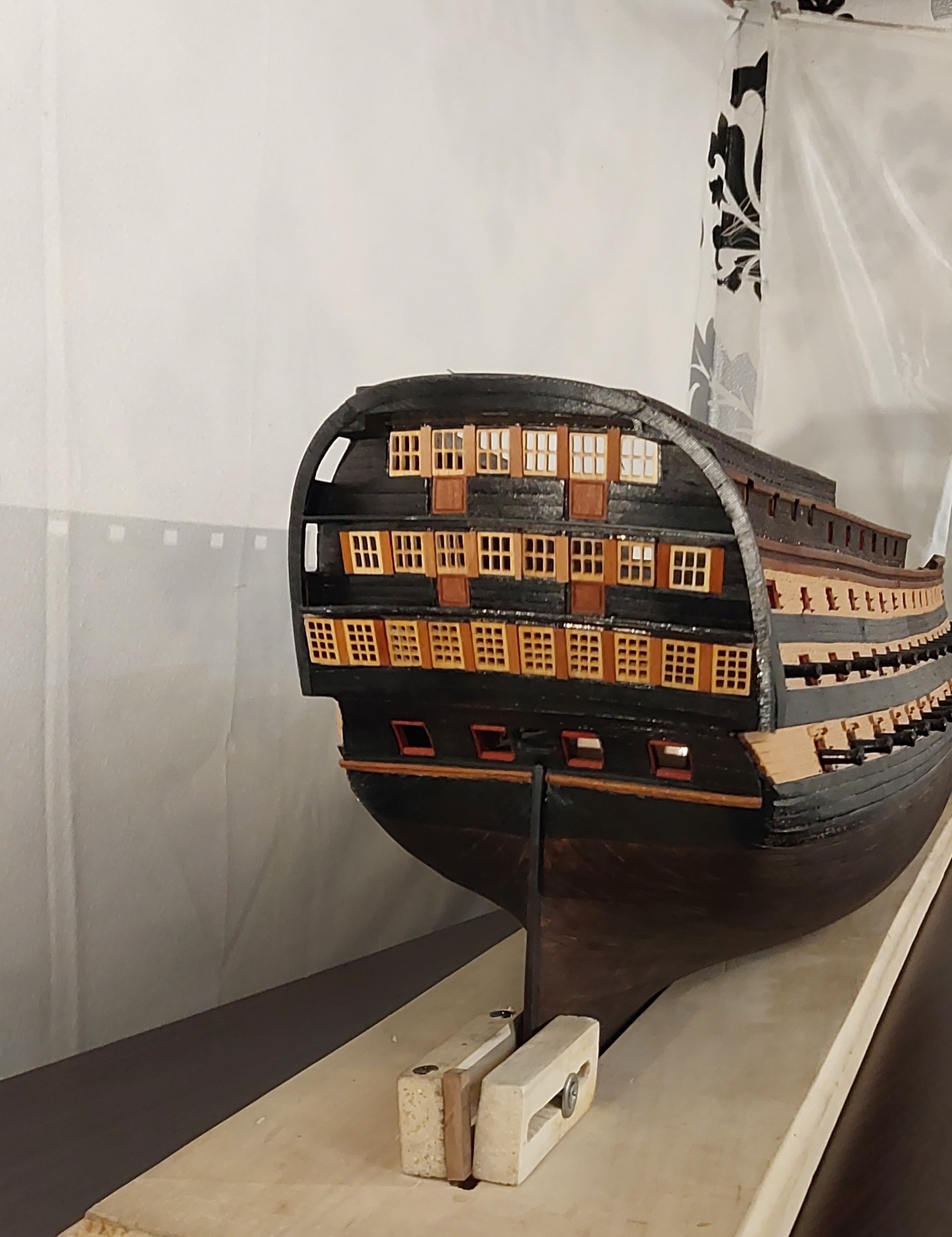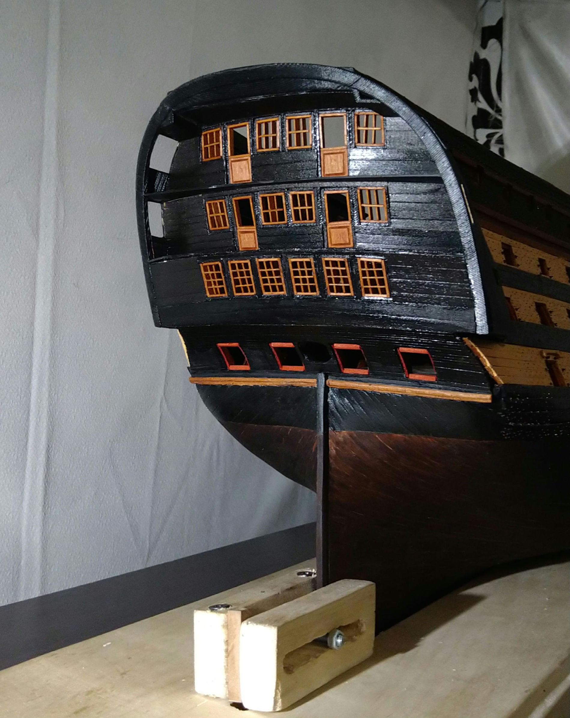 Mała aktualizacja po nowym roku. Udało mi się dopasować większość okien i kolumienek. Zostało parę rzeczy do dopracowania i niedługo będzie można zakończyć(przynajmniej na razie) prace przy rufie. A w ramach uchylania rąbka tajemnicy całkiem nowa tabliczka i ładniejsze kolumny.