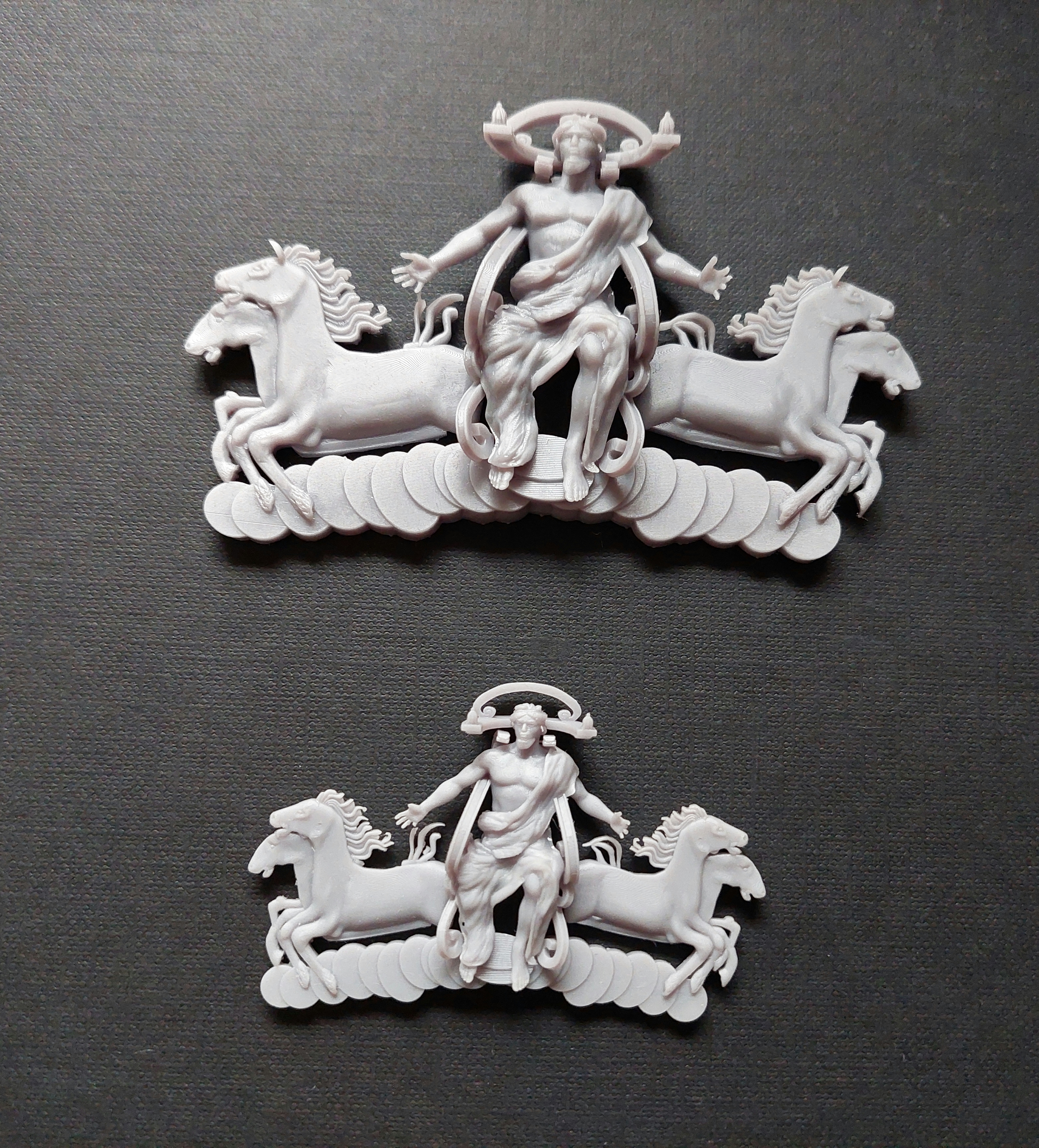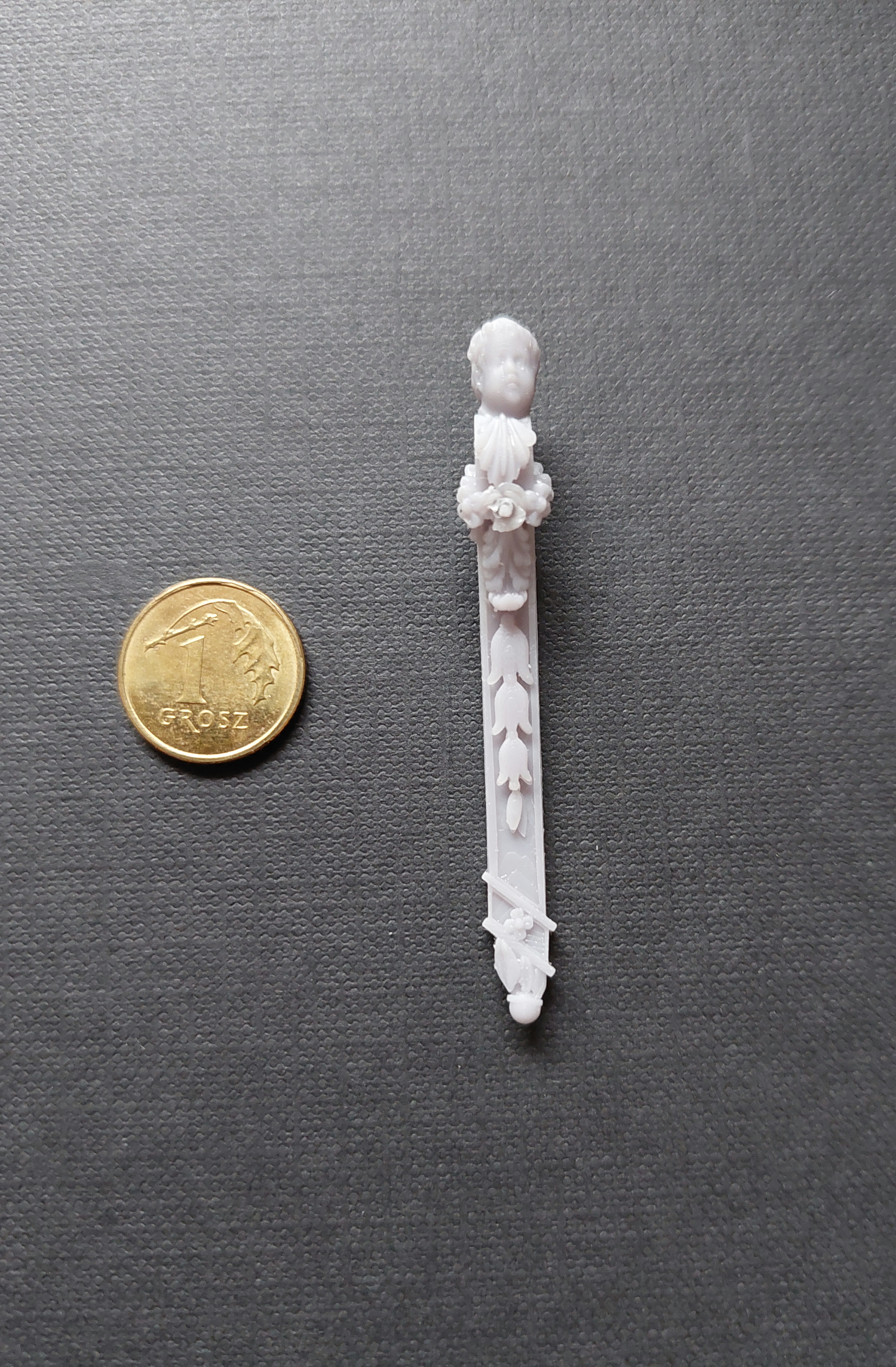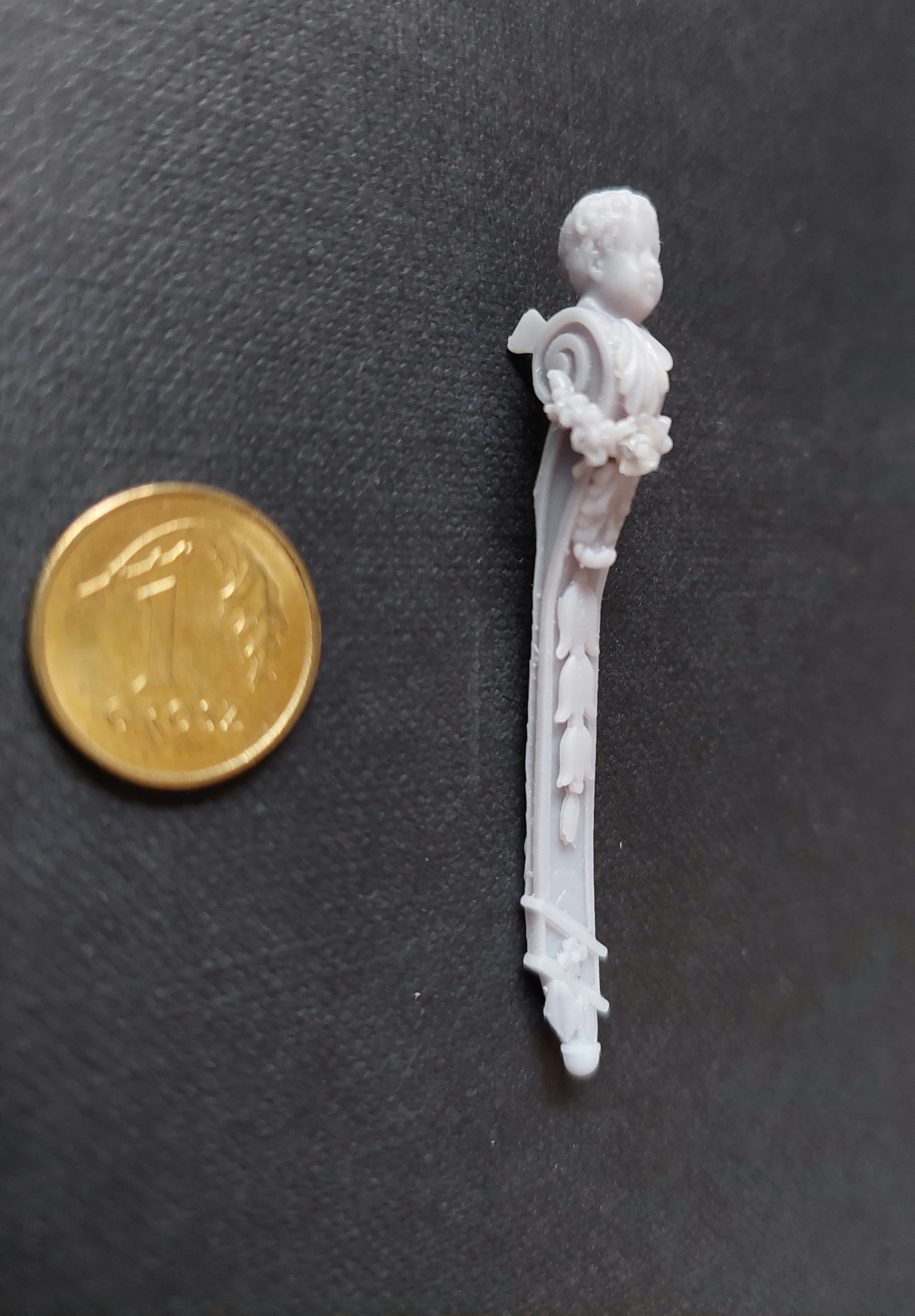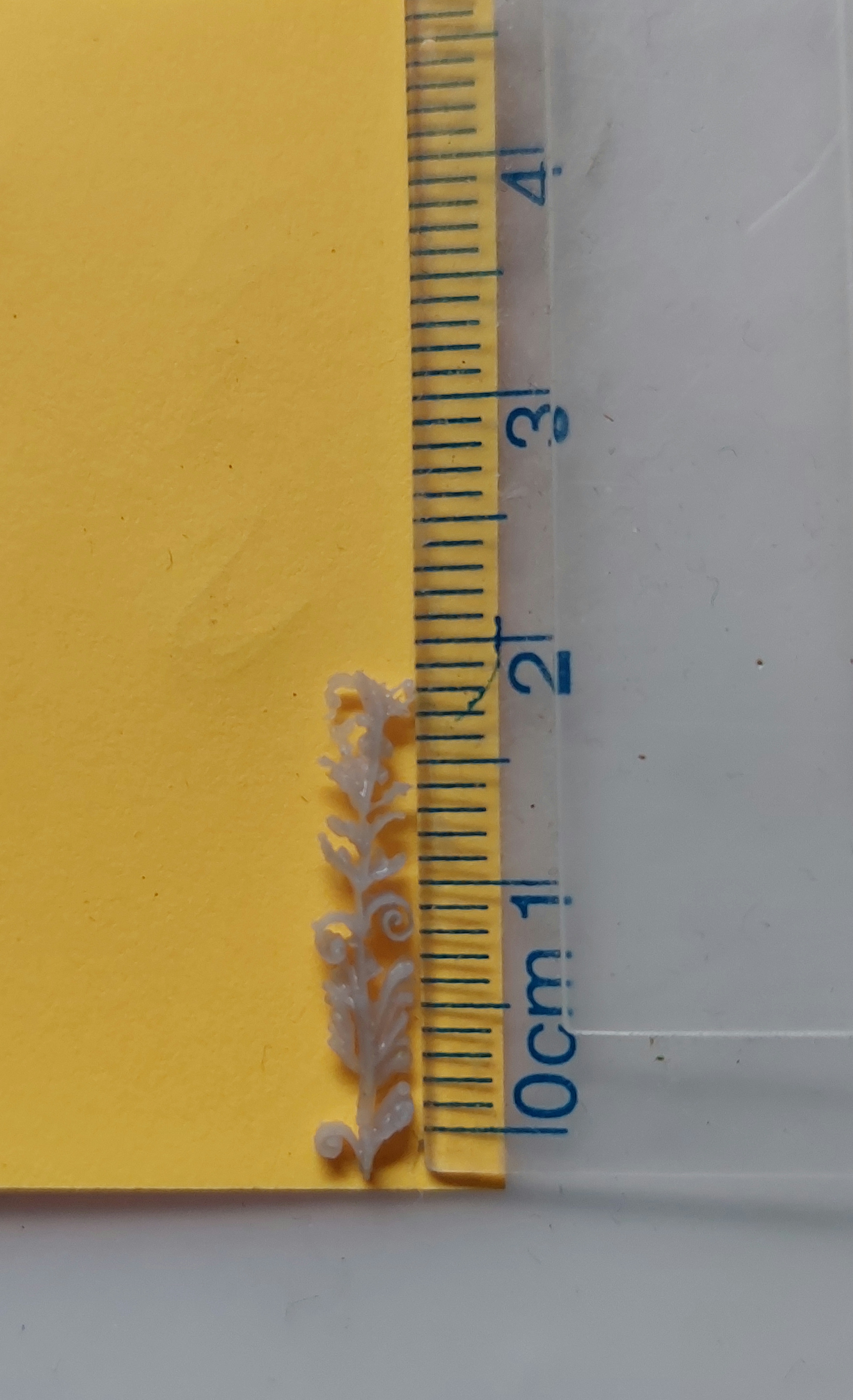 Ostatnie kilka miesięcy poświęciłem pracy przy rufie. Po licznych przemyśleniach i nowej maszynie postanowiłem usunąć zdobienia z gruszy i zastąpić je drukiem 3d. Trudnością będzie samo ich zaprojektowanie, mam już część, zobaczę jak pójdzie z resztą. Technicznie wymagające było odpowiednie ustawienie parametrów drukarki 3d do uzyskania z żywicy tak drobnych elementów. Trochę to zajęło, ale się udało.
