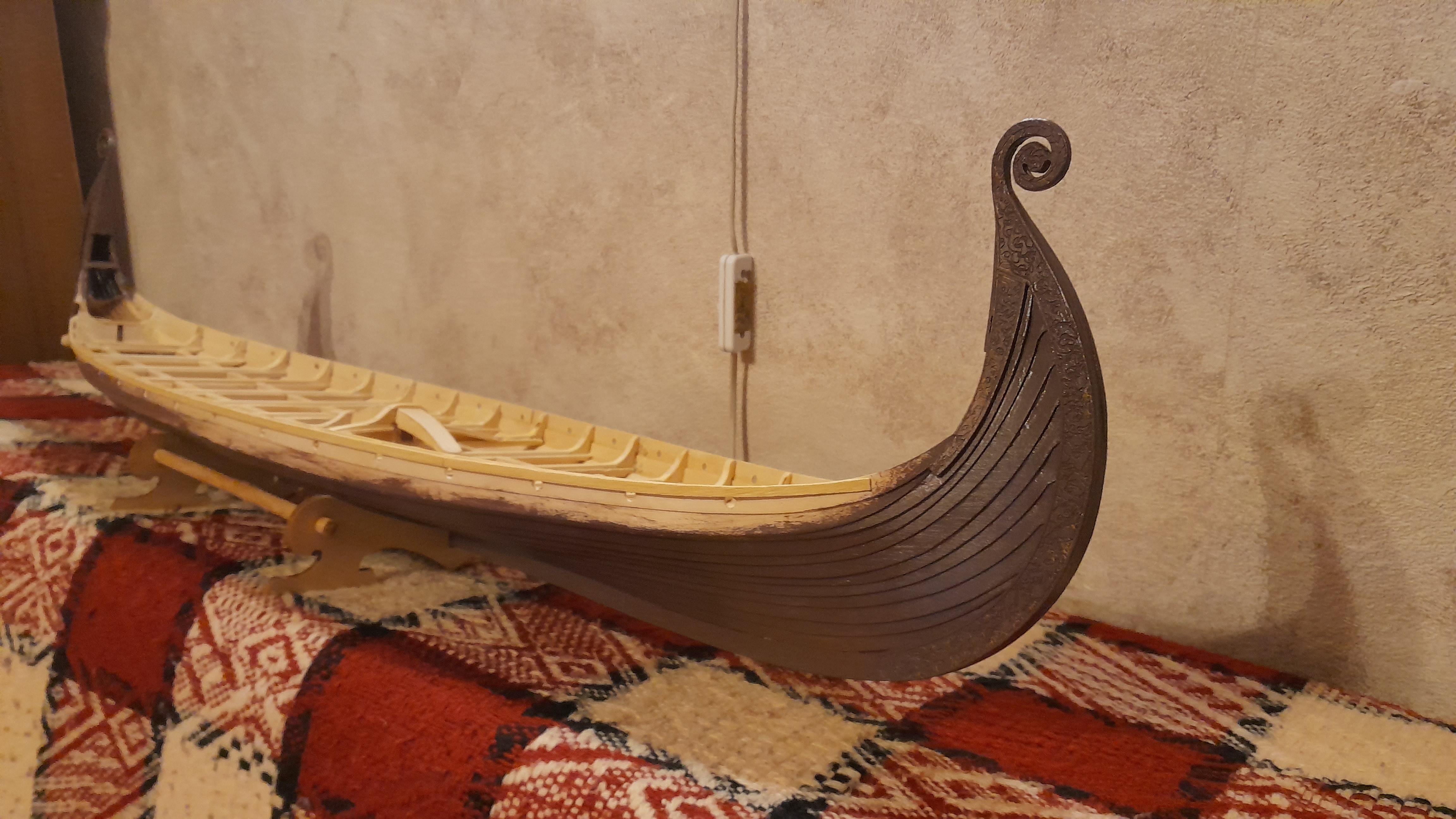 Ciutke czasu minęło co nie oznacza, ze nic się nie działo... Trochę konsultacji książkowych, trochę szperania po materiałach, troch zdziwień i pewna doza frasunku... Ile modeli tej jednostki - tyle interpretacji materiału źródłowego. Ktoś powie że oryginał jest dostępny i nie podlega dyskusji to co jest widoczne gołym okiem. tyle, ze to nie Vasa, którego podniesiono z dna plus/minus w całości... ale coś co wymagało poskładania do kupy mniej lub bardziej trafnie. Np na temat pozycji, w których są zamocowane do burt knagi, znalazłem cztery propozycje w tym dwie w materiałach muzealnych. Czy na pokładzie był rodzaj kołkownicy? według jednych tak według innych nie... czy była knaga do obkładania liny kotwicznej? Jest szansa, ze była... a kotwica była kamienna czy bardziej w typie admiralicji? czy do pochówku nie zdemontowano żelaznych okuć jarzma masztu? Prawdopodobnie tak, bo są podobno na jarzmie widoczne ślady po takich okuciach. A w innej interpretacji to nie były okucia żelazne tylko drewniane wzmocnienia... Tak, ze tak...
