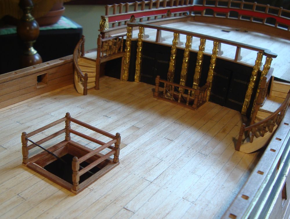 Kolejna sprawa... na rycinie Payne'a całe śródokręcie i pierwszy pokład rufy są pokryte gretingami. Tak samo jest w modelu z muzeum MMW w Gdyni. Mam gdzieś fotki tego modelu, które zrobiłem lata temu ale diabeł ogonem nakrył, nie mniej je znajdę w końcu bo mam na pewno