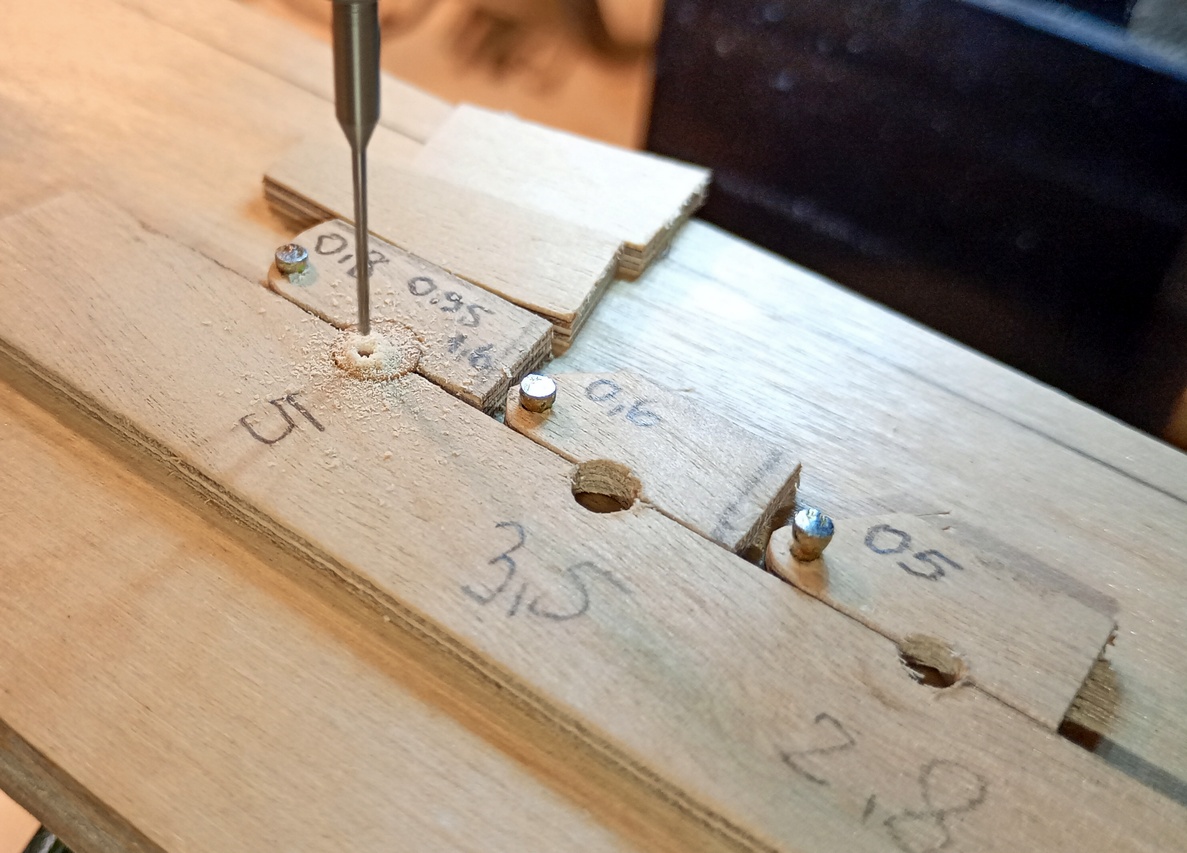 Do frezowania rowków wykonałem dla każdego rozmiaru takiego pomocnika: