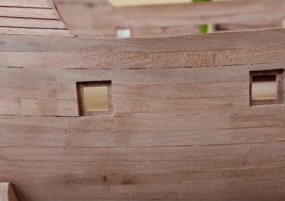 No cóż.. Jak już zacząłem relację, to wypadałoby raz po raz raportować, co tam z modelikiem się dzieje. No to dziś trochę o zabawie z ambrazurami. Najpierw korzystając z takiej samoróbki-pomocy naukowej, wykreśliłem linie wyznaczające poziom tych dziur.