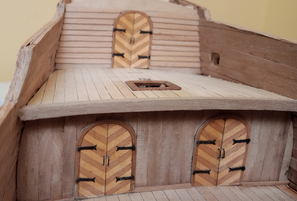 No dobra, przyznam się. Od jakiegoś czasu, być może od roku też coś kleję. Znaczy, jak mam czas i jeszcze jak mnie wena tfórcza najdzie, to coś tam podłubię. Po Osebergu zerkałem na rożne łajby i zastanawiałem się coby tu poważniejszego, ale jednocześnie nie za skomplikowanego spróbować zbudować. No i wybór padł na taką sobie XVII wieczną fregatę. Ja tam jakiś zaawansowany modelarz nie jestem, technikiem ani inżynierem też nie, ino taki sobie humanista, więc chciałem model który jako tako uda mi się skleić po poprzednich doświadczeniach, ale też taki który będzie miał conieco, ale nie za dużo jakichś wymagających gimnastyki elementów. Model ten to nie jakiś Victory czy inny Royal jakiś tam, ale mimo wszystko trochę skomplikowanych motywów jest, czyli to o co mi chodziło. Zacząłem się rozglądać za planami, udało mi się wypatrzeć na fajfoklockim Ebayu orginalne plany Corela, zakupiłem i zabrałem się za robotę. Na początek był szkielet, potem poszycie pierwsze, na to poszycie drugie … i tak zeszło może z pół roku budowy..