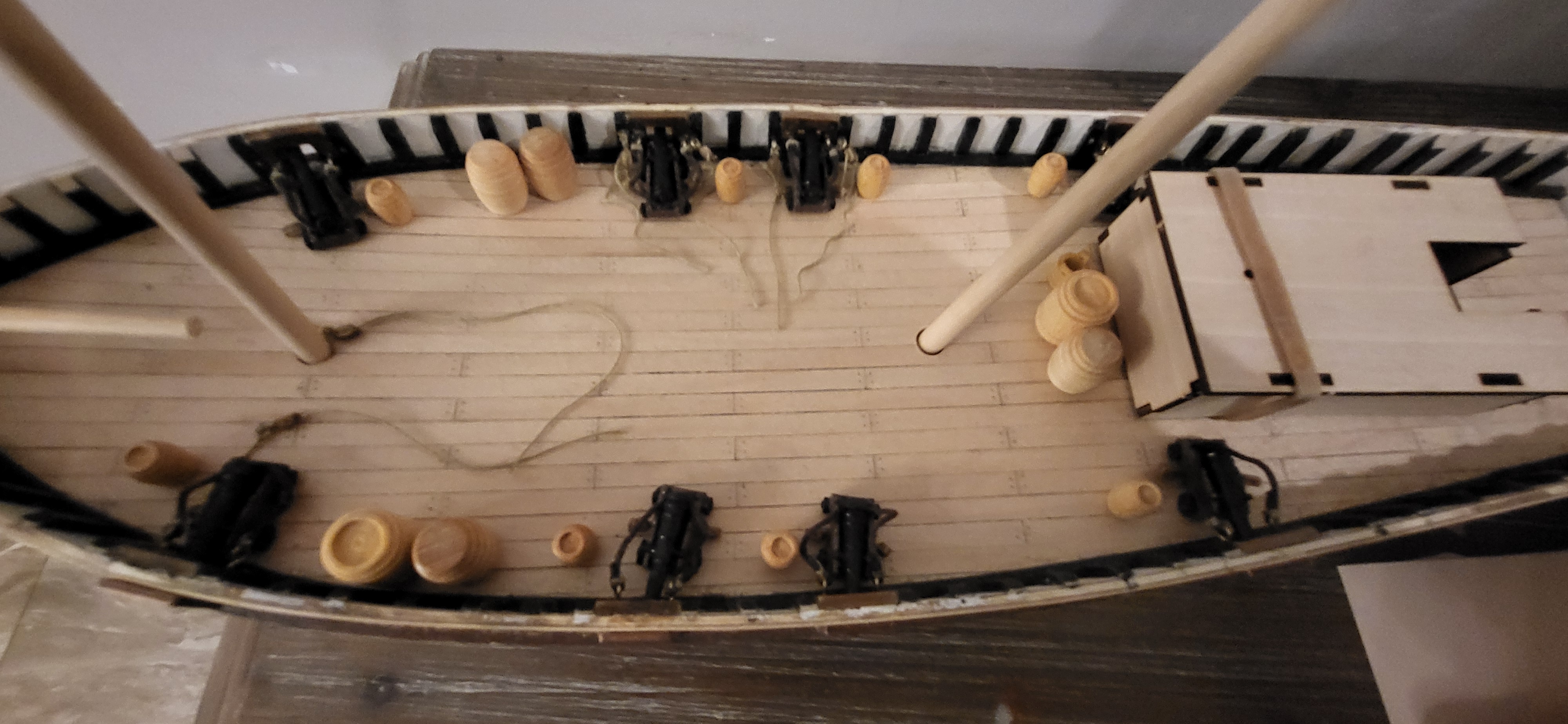 Zawalili mnie w robocie, że nawet stóp nie widać, wracam jak krasnalud z kopalnii ale już niedługo zerwę kajdany poniżej zdjęcia obecnego etapu polaris i niespodzianka na Santasima na jednym ze zdjęć widać Esmeril hiszpańską armatkę- ściągnąłem z Czech caronady też widać wszystko w oparciu o literature i wątek który założyłem na tym forum. Santisimę przerobie na 1805 rok trafalgar jestem już uzbrojony w materiały z internetu i nie zawacham się ich użyć, ale nadal trenuje na polaris jeszcze trochę treningu