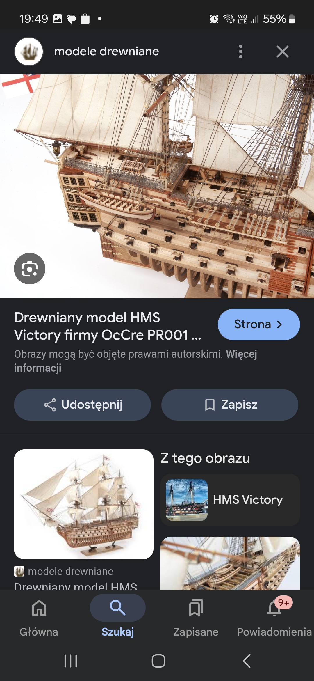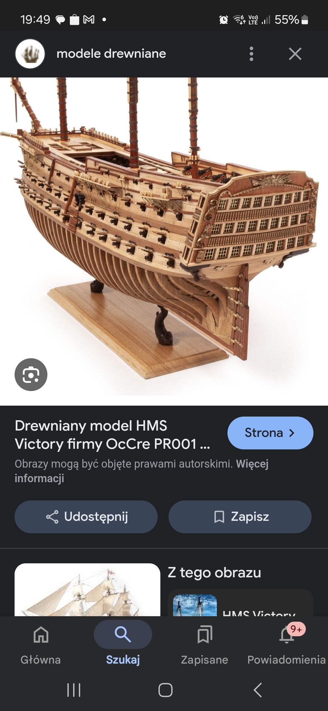 Dobry wieczór, jako, że mam trochę czasu na rozmyślania na wyjezdzie a nie mam jak robić dalej Polaris i ogólnie dużo się dzieje w mojej pseudo modelarskiej głowie m.in. zakupiłem ostatnio na amazon w cenie niemal 50% niższej kompletny Santasimo, była okazja tylko 1 zestaw :shock: jest już u mnie, ale ja nie o tum, j estem uparty i konsekwentny więc pomysł jest taki po Polarisie robię Santasimo :o i w momencie jak dojde do etapu połowy bez masztów to porównam z zakupionym do połowy, jesli będzie lepiej wykonany kontynuuje moj model. A co z drugim, obojętnie który to będzie otóż są 4 opcje: 1) dokanczam go i dorabiam na wzór dokupionego modelu i mam dwa różniące się wersjami. 2) przerabiam na statek piracki tylko w historii najwiekszy piracki mial 40 armat wiec santisima z 140 to nie pasuje chyba że dla króla piratów :lol: w kazdym razie wtedy farbuje żagle, przemalowuje i mam super zabawe. 3) w schemacie santisimy jest pokład niżej który można uwaga wyciąć i przerobic wtedy okręt na wzór Victory jest to do zrobienia. 4) kontynuuje jako wymyślony okret bez tła historycznego stad pytanie czy ktoś mógłby mi podeslac plany hms victory w pdf najlepiej w skali 1:90 choc inna tez bedzie ok? W wolnym czasie uruchomie fantazje i sprawdze czy kształt trynidad sie przerobi na victory? Wiem, że dla niektórych to abstrakcja itd. ale spokojnie najpierw Polaris, potem Santisima do połowy i podejmę decyzję co dalej, narazie zbieram materiały, plany i się szkolę :? W załączeniu zakupiony do polowy model Santasimo i linia Victory. Czyli podsumowujac jesli jest ktoś życzliwy to proszę o podeslanie planow victory, dobrej nocy, mamy weekend