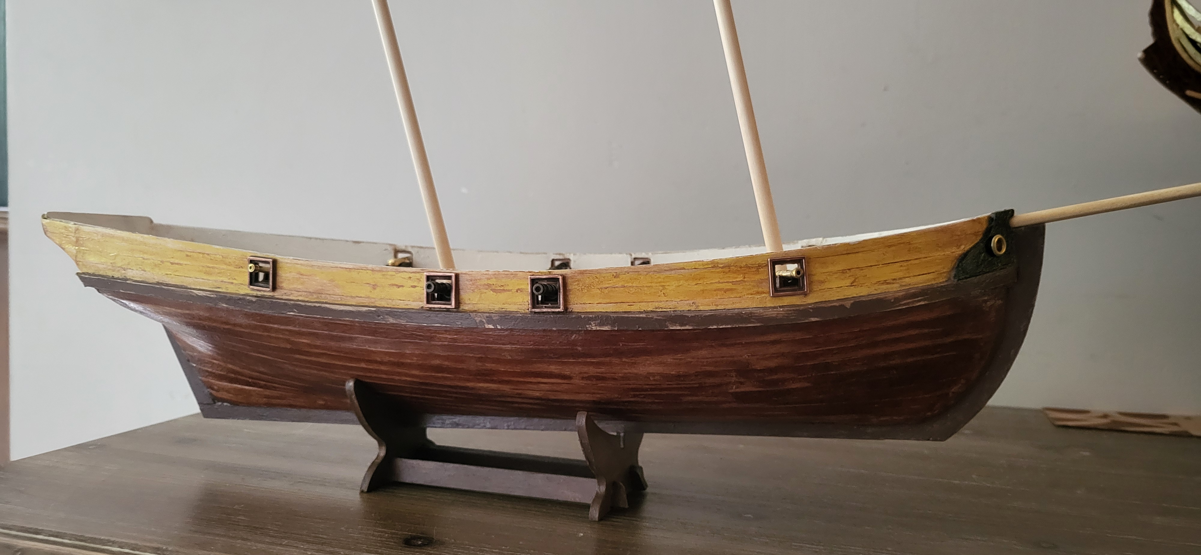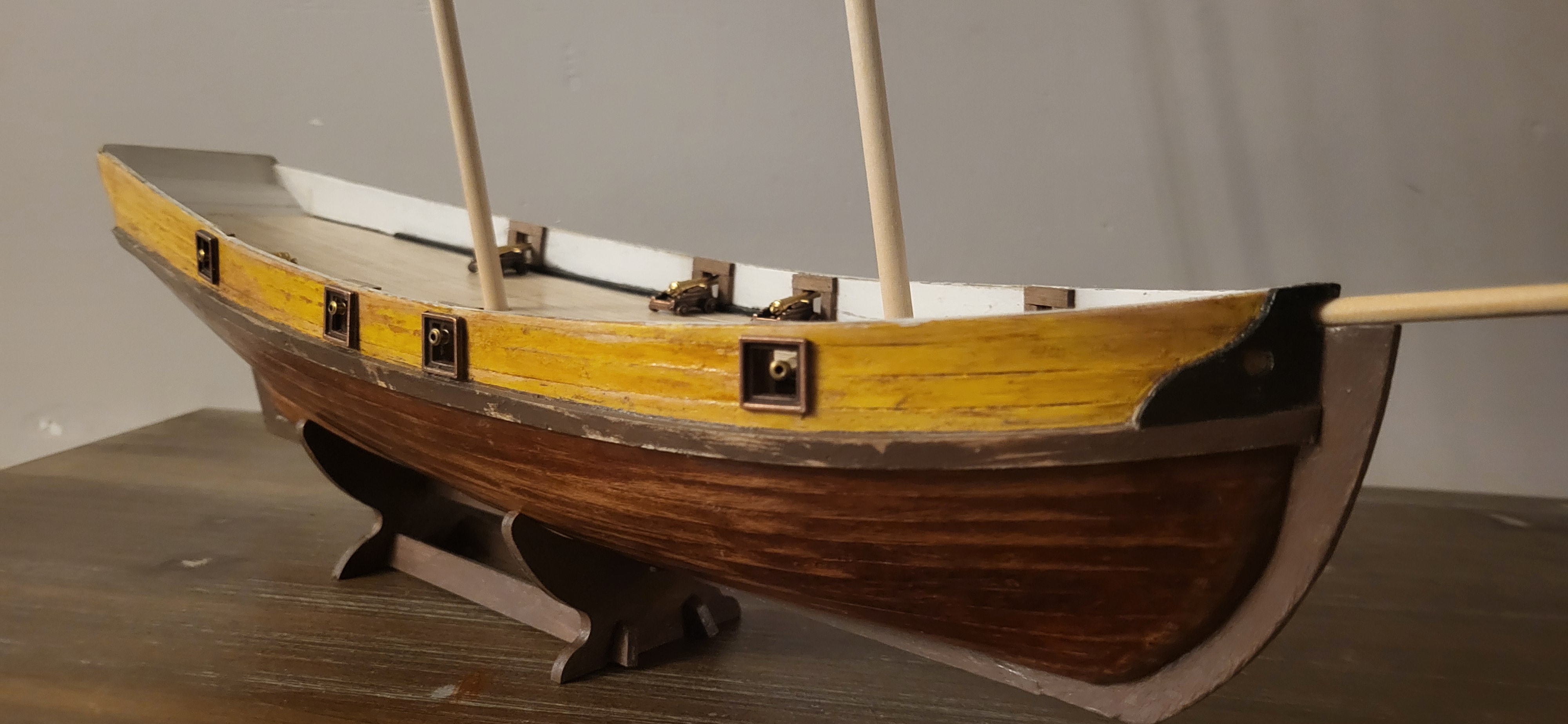 Możliwe, że udało się poprawić deskowanie dziobu bo ciągle bejca nie równo brała, dałem farbę jak na powyższych fotkach, ten gruby pas farby. Teraz podszlifiwałem kilka razy i dałem satynową, zobaczymy jak wyschnie, to jest wojna :lol: