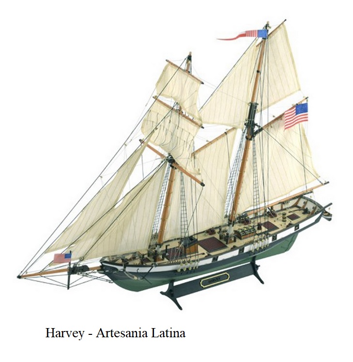 rzeczywisty model szkunera Harvey - Artesania Latina 22416 wydaje się idealnym na drugi model lub dla kogoś kto chce wskoczyć od razu na głęboką wodę (uważam, ze powinien być budowany klasycznie - bez modyfikacji to już poważniejszy model) ma wszystkie elementy i chyba przegląd wszystkiego czego potrzeba do treningu przed dużo droższymi zaawansowanymi modelami - a nawet więcej świecący napis w podstawce :shock: czy to potrzebny gadżet, jak kto lubi, skoro jest w zestawie :?