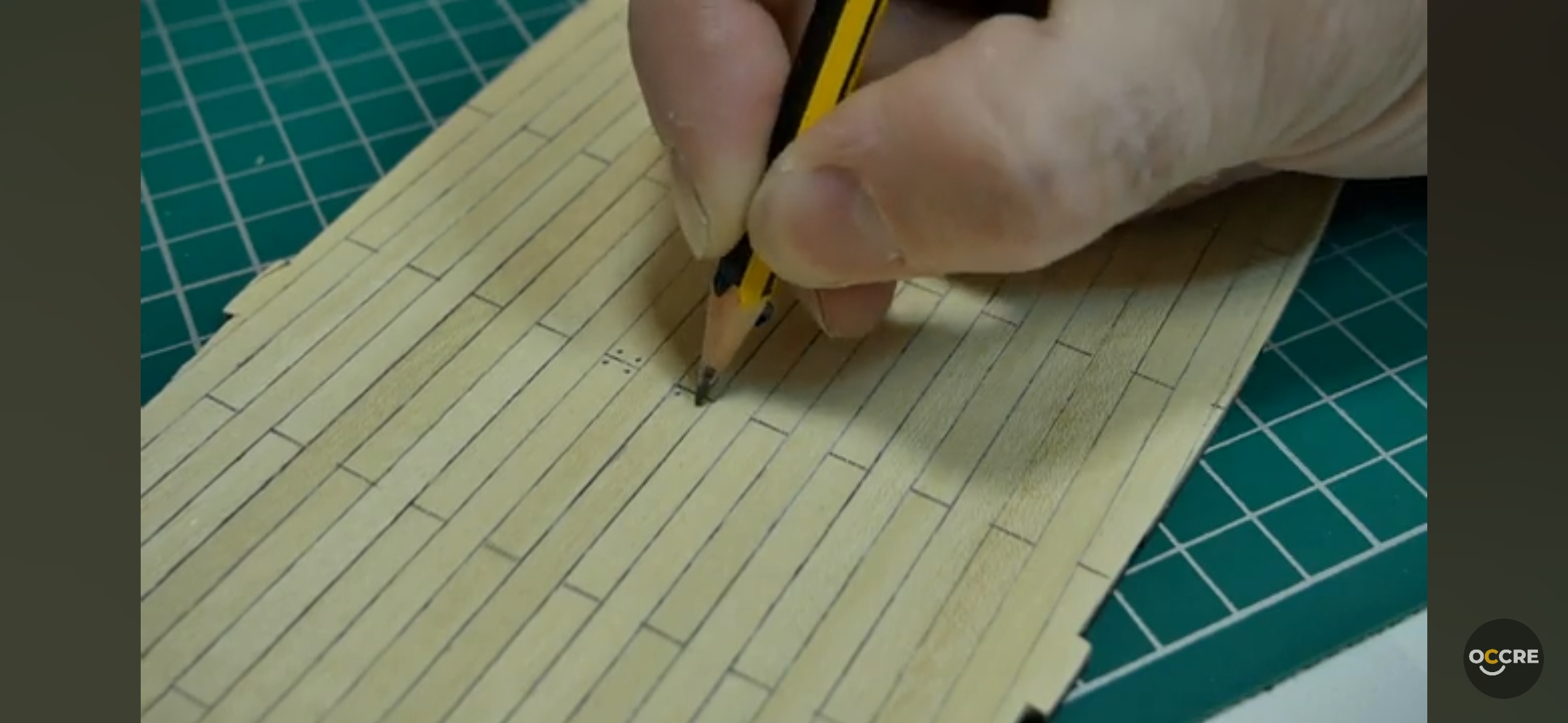 Rzeczywiście zasugerowałem się instrukcją i filmikami, ale chyba lepiej byłoby pociąć na odcinki np 6 cm i układać jak panele. W załączniku wstawiłem ich propozycję z rysowaniem linii i atrapy gwozdzi na której się wzorowałem, ale twój pomysł mógłby być efektowniejszy. Nie wiem czy na statkach są gwożdzie na pokładzie tak wbite?, jakoś mi to nie pasuje. W skrócie to ich pomysł był na malowanie linii i gwozdzi ołówkiem, a pożniej ich utrwalanie chyba lakierem, muszę to przetłumaczyć w translatorze. Mam już połowę, szkoda zrywać, jeszcze nad tym pomyślę.
