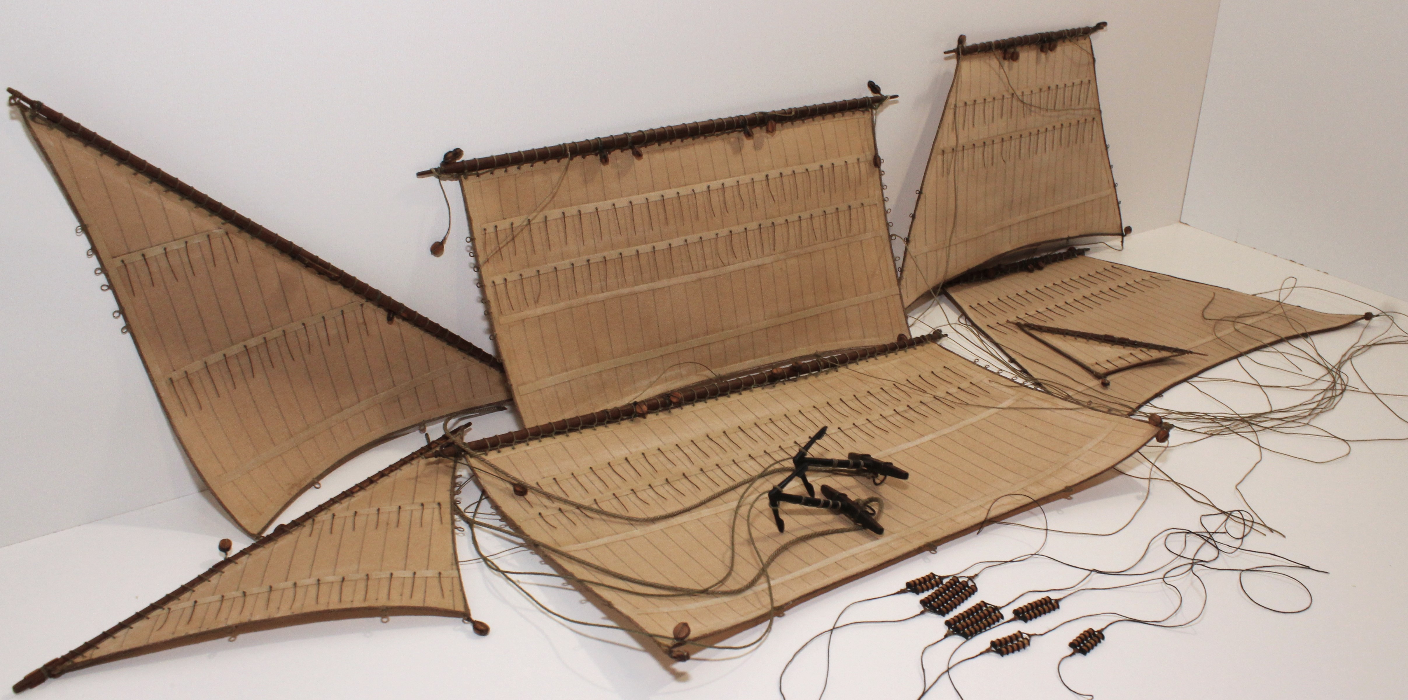 Materiały to kwestia wyboru, płótno na żagle, bloczki i linki również.