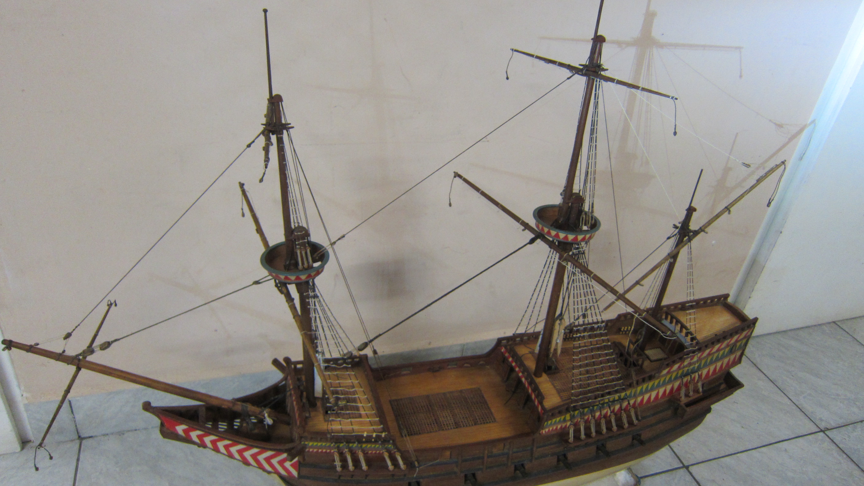 Nie posiadam jakichs lepszych planow Twego galeonu (Wodnik?), by to sprawdzic, ale mam troche zdjec wspolczesnej repliki zaglowca, hiszpanskiego galeona, na ktorym plywal niejaki Juan Rodriguez Cabrillo - Portugalczyk w sluzbie Hiszpanii w 2giej polowie XVI wieku, o nazwie "San Salvador", ktory zwiedzalem kilkakroc. Dzis ta replika jest czescia muzeum marynistycznego w San Diego.