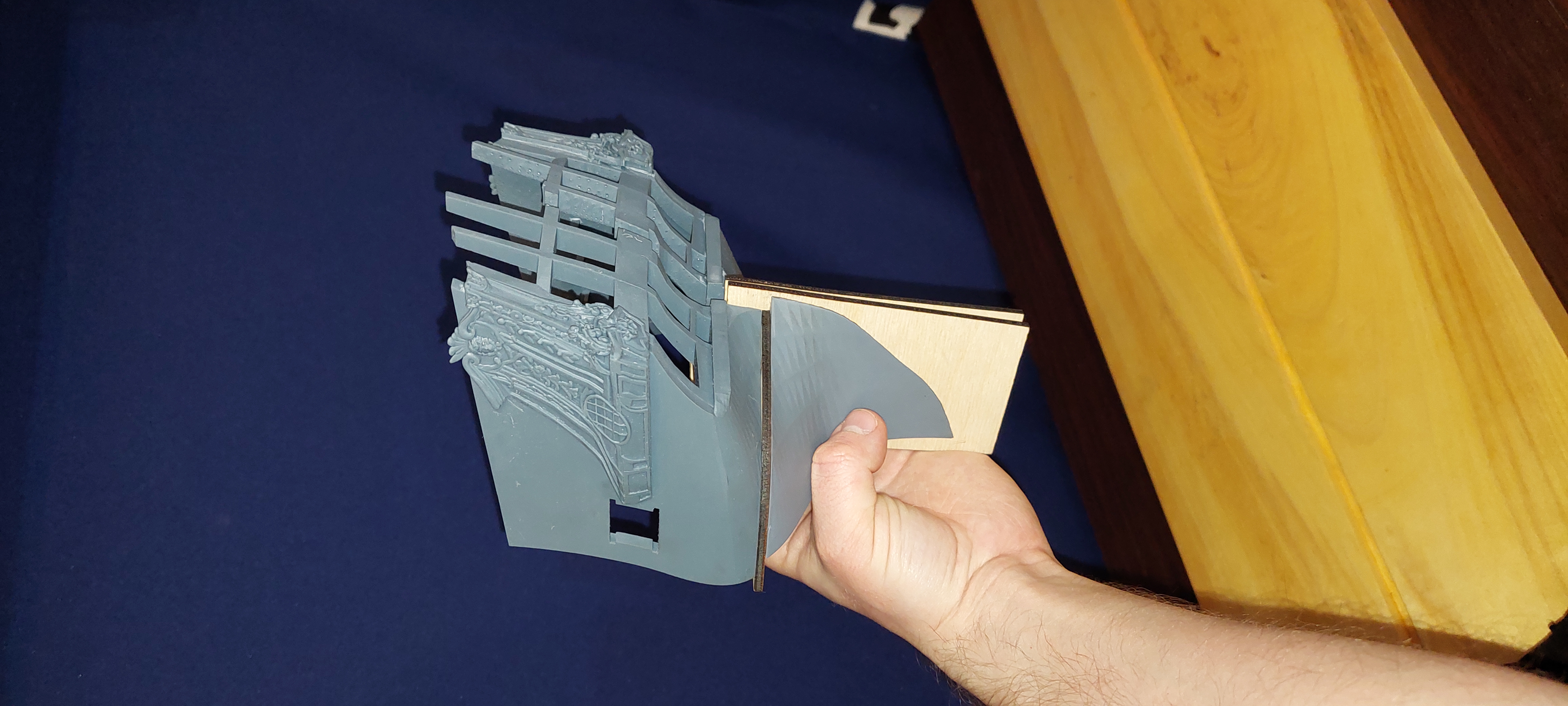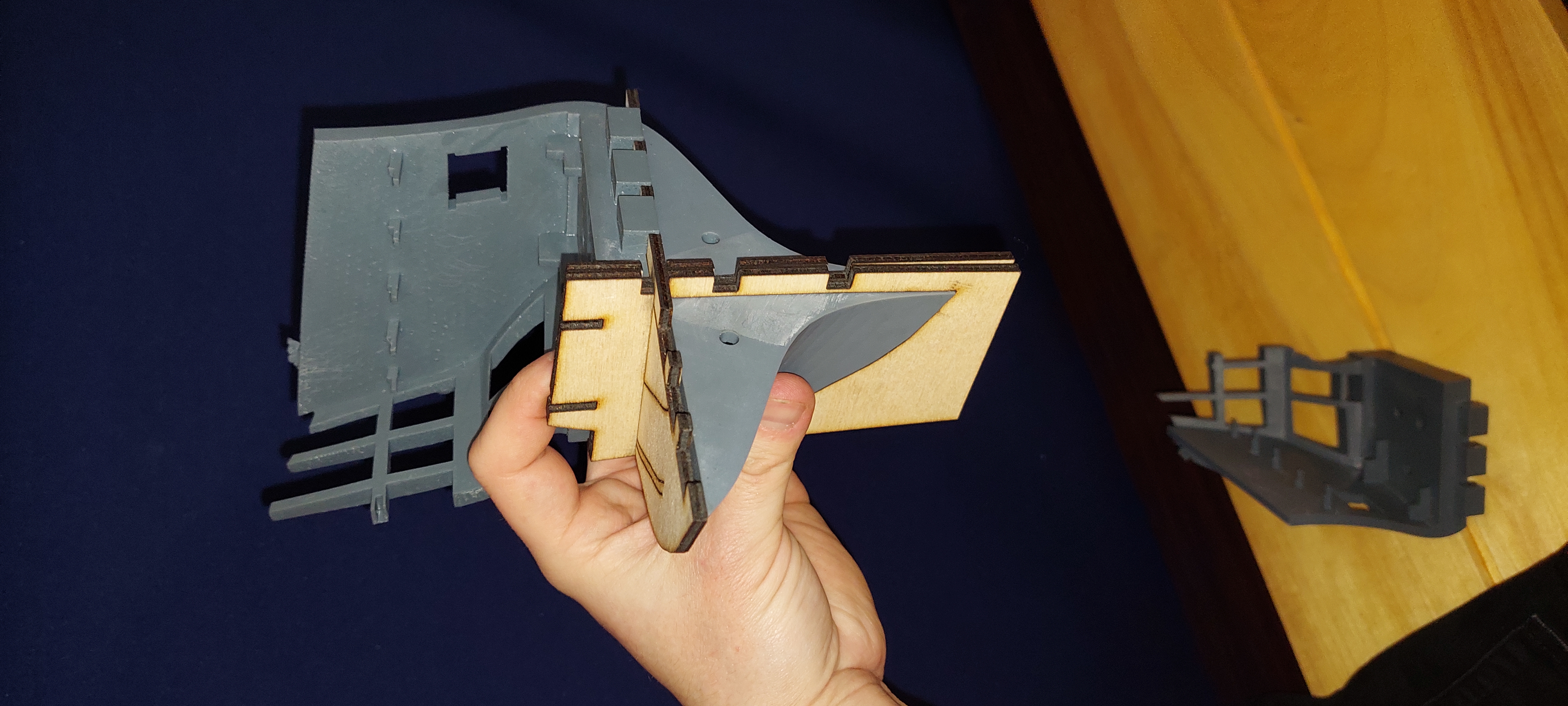 Pierwotnie miała być tylko sekcja rufowa, ale że wyszło jak wyszło to mogę też zrobić nawet kadłub. Tylko ten kadłub jest trochę inny niż większość tego co sprzedają na rynku- udało mi się stworzyć hybrydę druku 3d i sklejki. Od pokładu w dół grodzie są wycięte ze sklejki a "góra" jest z żywicy, wkładki na rufie i dziobie też są z żywicy.