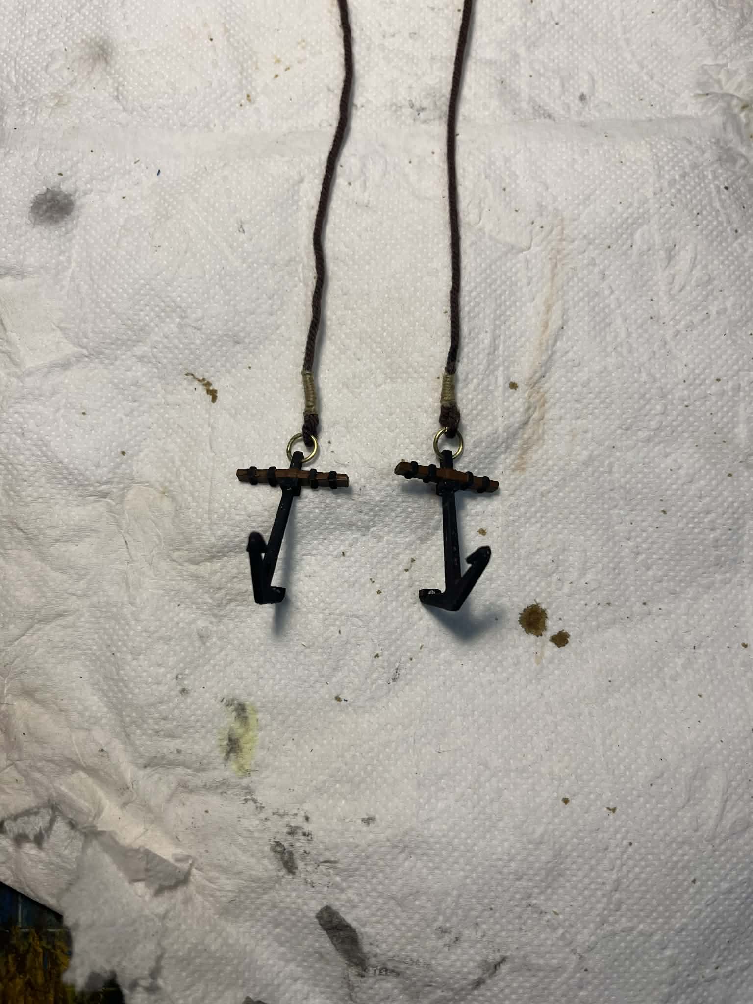 Przygotowałem kotwice zgodnie z instrukcją. Zdecydowałem się dodać kilka dodatkowych elementów - słupki na burtach do mocowania kotwicy oraz przepusty na pokładzie dla lin kotwicy. Nie wiem czy takie rozwiązanie jest sensowne w takiej jednostce, ale jak już to sobie powiedzieliśmy - jednostka fikcyjna, więc puszczam wodze fantazji