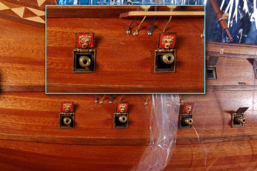 Mi najbardziej podobają się na klapach ambrazur złote lwy na czerwonym tle - jako alternatywa dla malowania w kolekcji. Jak tylko zdecydowałem się na waloryzację galeonu SJB to zaraz wprowadziłem "złote patynowane lewki" na klapy