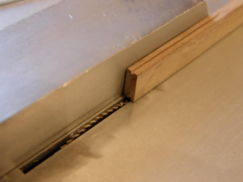 Wychodząc temu naprzeciw z blachy aluminiowej 2 mm dorobiłem płytkę ze szczeliną na tarczę. Szczelina ma 1,8 mm. Zamontowana tarcza ma grubość 0,56 mm. Listewka z wyfrezowanym rowkiem ma 3 mm grubości.