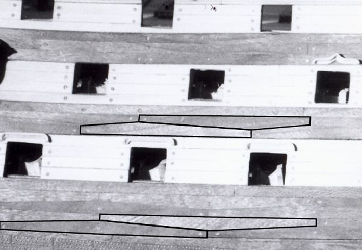 Trudno mi było to zweryfikować z rysunkami w Anatomy of ... , gdyż jej nie posiadam, a na kiepskiej jakości ilustracjach mogę się raczej domyślać niż coś dojrzeć. Dopiero na ilustracji poniżej widać, że na Victory były dwa rodzaje tych planek: