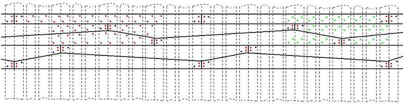 Według informacji podanych w książce Longridge'a The Anatomy of Nelson's Ship, układ dolnego pasa wzmocnień (main wale) był ułożony w tzw. układzie "anchor stock" jak na poniższej rycinie. Wymiary, które zostały podane przez autora książki odpowiadają skali w jakiej został wykonany przez niego model tj. 1:48. Dopisane przeze mne wymiary odzwierciedlają skalę 1:96.