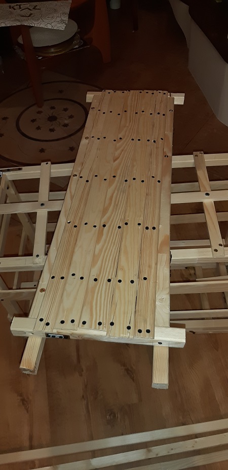 Belki, wkręty i łączniki metalowe kupiłem w budowlanym, jak widać trochę tego jest, robie to z myślą, że w razie ewentualnego upadku większa ilość belek i metalu zaapsorbowała najbardziej druzgocący impet.