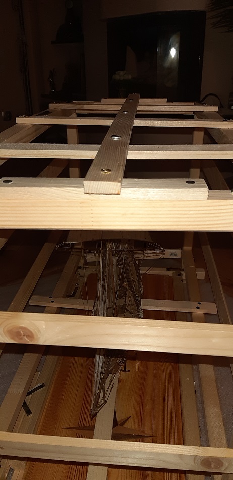 Klatka dla szkunera zrobiona, jak by kto się pytał to te belki można też odkręcić.