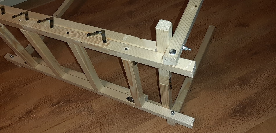 Belki, wkręty i łączniki metalowe kupiłem w budowlanym, jak widać trochę tego jest, robie to z myślą, że w razie ewentualnego upadku większa ilość belek i metalu zaapsorbowała najbardziej druzgocący impet.