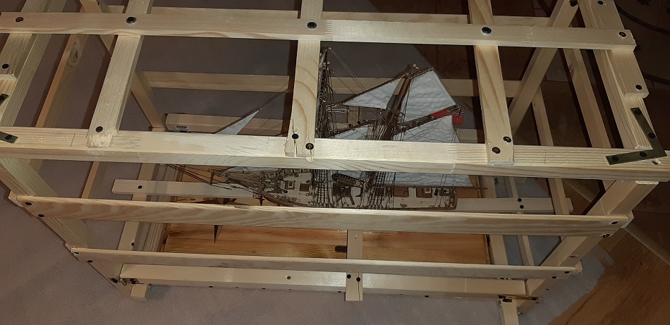 Klatka dla szkunera zrobiona, jak by kto się pytał to te belki można też odkręcić.