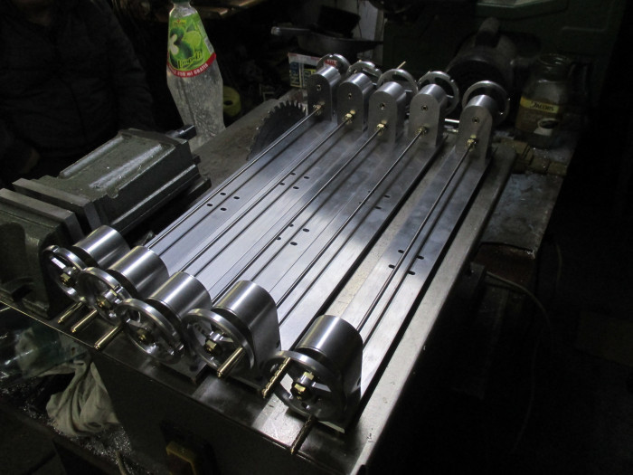 Poza tym Romek robi owijarki, fikuśne giętarki ( małe dzieło sztuki co się dostaje w pudełeczku drewianym ) i ropy. Dodatkowo z mechaniki precyzyjnej i projektowania łącznie z zabawą CNC w dziale wykonawczym to nie ma sobie równych. Ja już u niego naprawiałem swoją piłę bardzo zmyślną która była produkcją na ograniczona skalę niemieckiej firmy E.Retzlaff z jezdnym wózkiem podawczym jak i posiadam większość skonstułowanych przez Romka narzędzi i przyrządów które używam z przyjemnością i radością. Romek robi to z pasji i doświadczenia. Teraz trwają pracę nad prototypem przyrządu do robienia zawiasów do furt armatnich( to chyba tajemnica jeszcze ) Wszystko jest trwałe i śmiało można powiedzieć bez kompromisów z najlepszych materiałów i precyzyjnie wykonane - HITECH . Nie jest to komercyjna reklama za którą mam jakiekolwiek profity. Ot lubię fikuśne mądre narzędzia i przyrządy. Pewnie nie wszystkie z posiadanych przeze mnie zdjęć Romek chciałby upubliczniać ale tylko takie mam a niech widać że coś się tam dzieje a nie tylko wymuskane fotki
