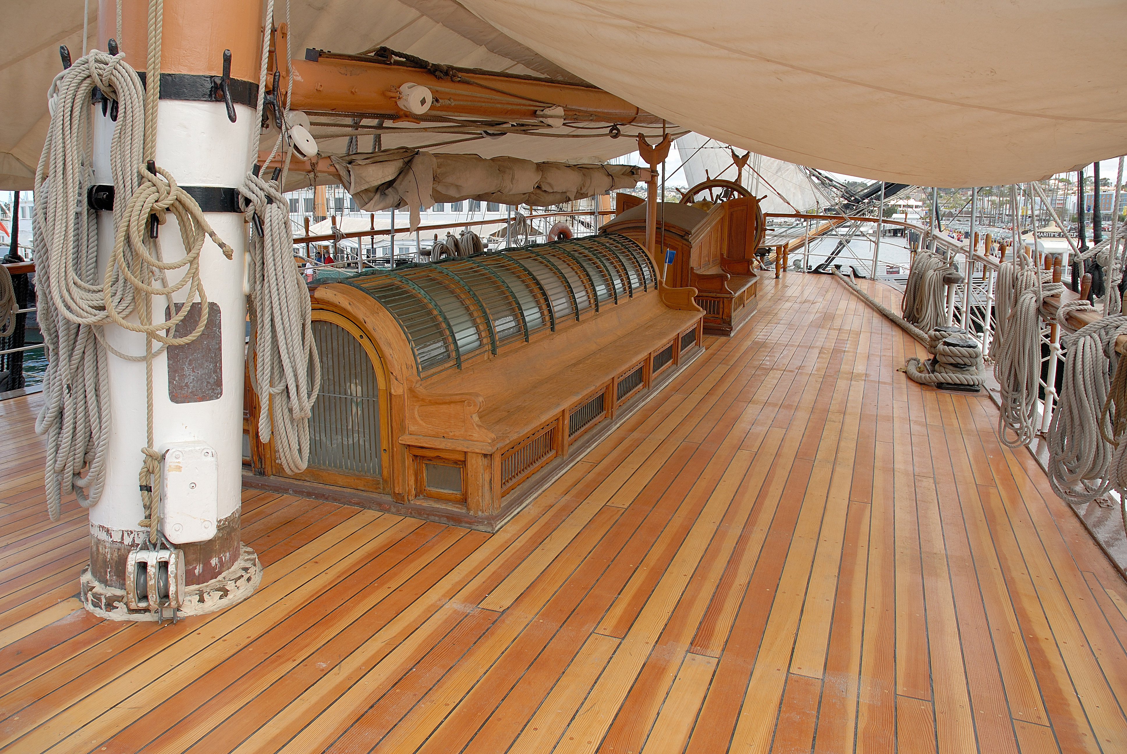 A tak wyglada swiezo polozony (wymieniony) poklad na "Star of India" w San Diego: