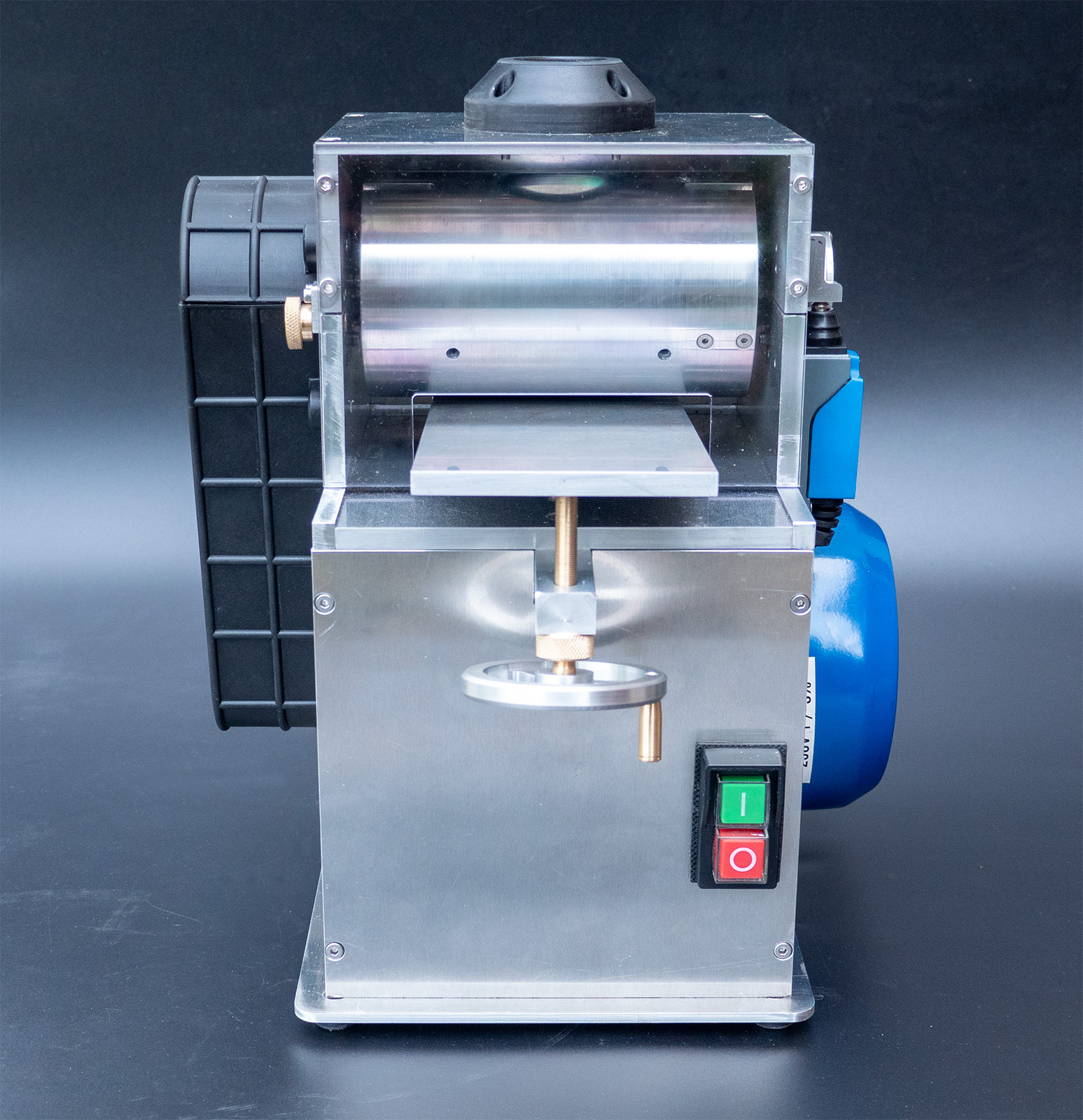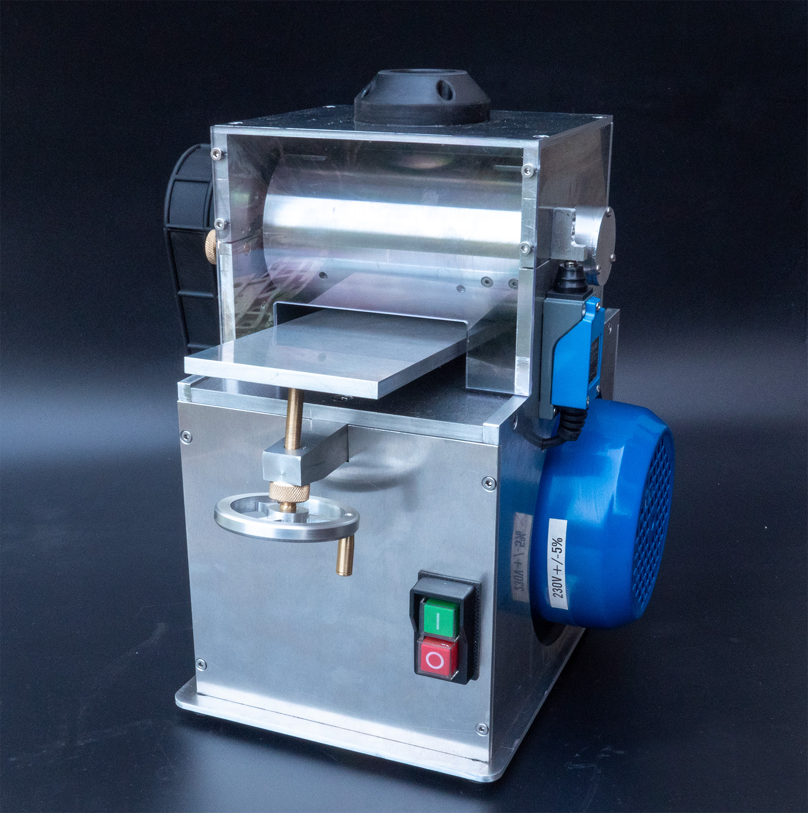 Uważam , że wał cierny powinien mieć na obwodzie około 5 mm warstwę elastyczną , np. z twardego poliuretanu i dopiero na tej elastycznej warstwie powinien być nawijany papier ścierny.