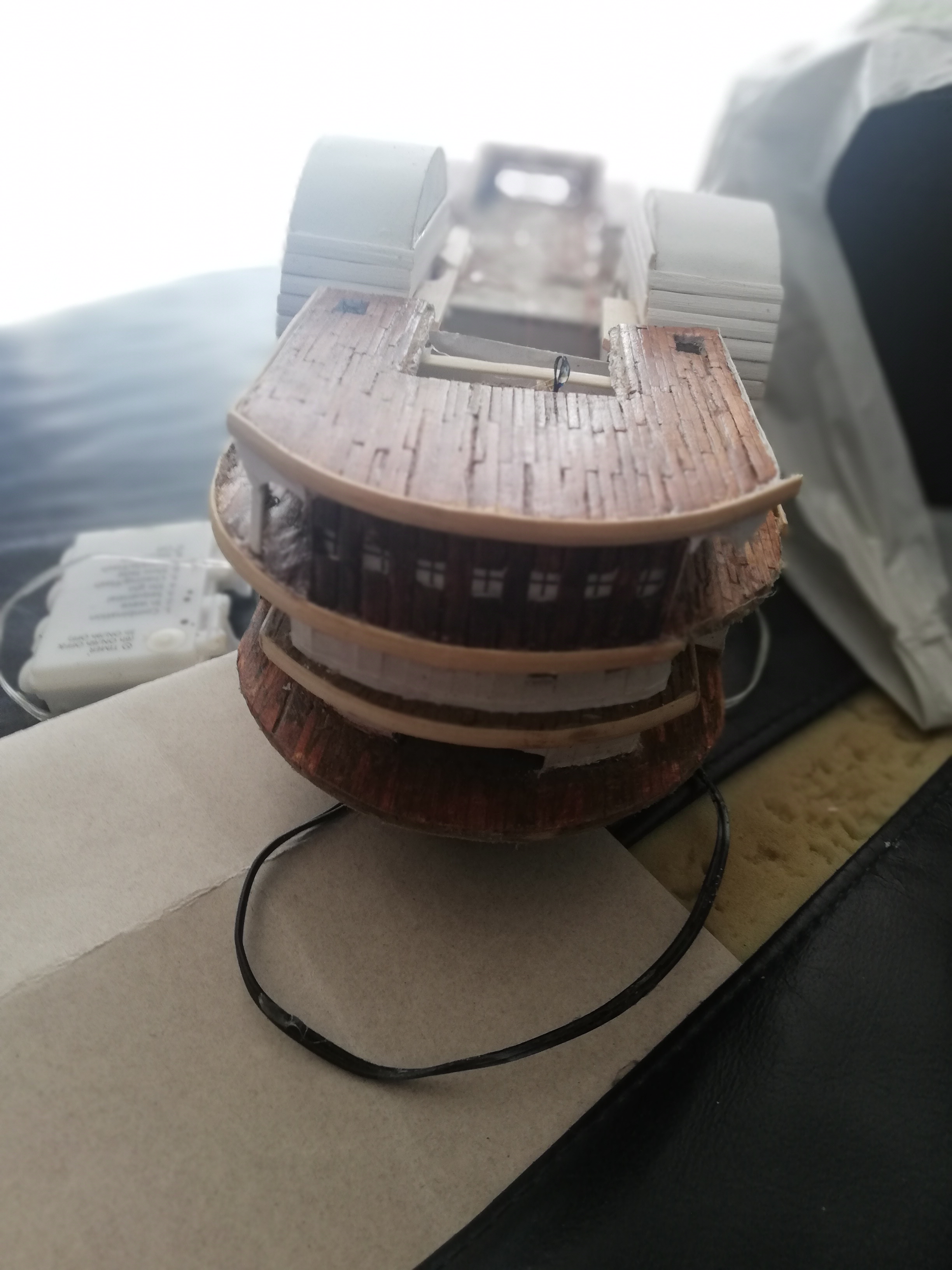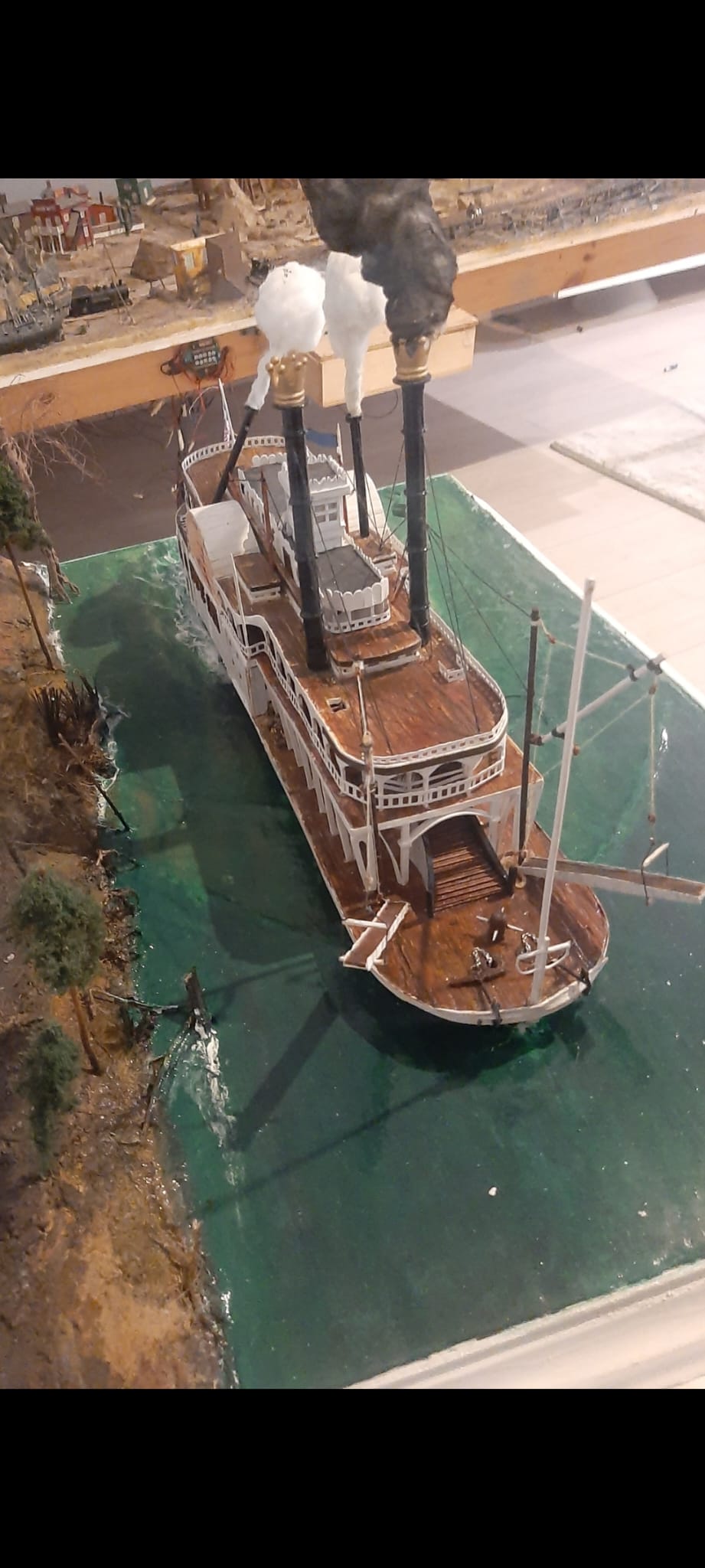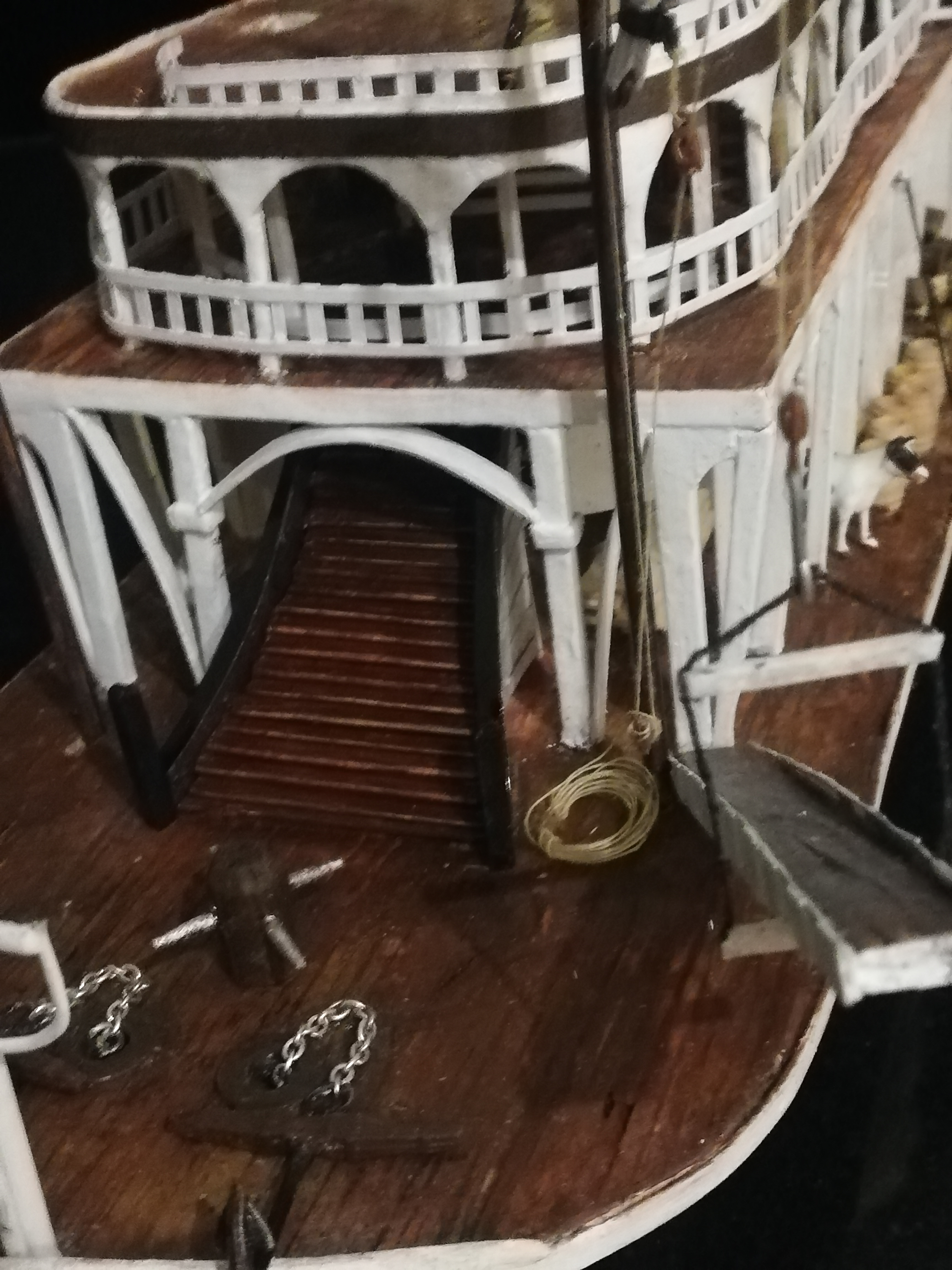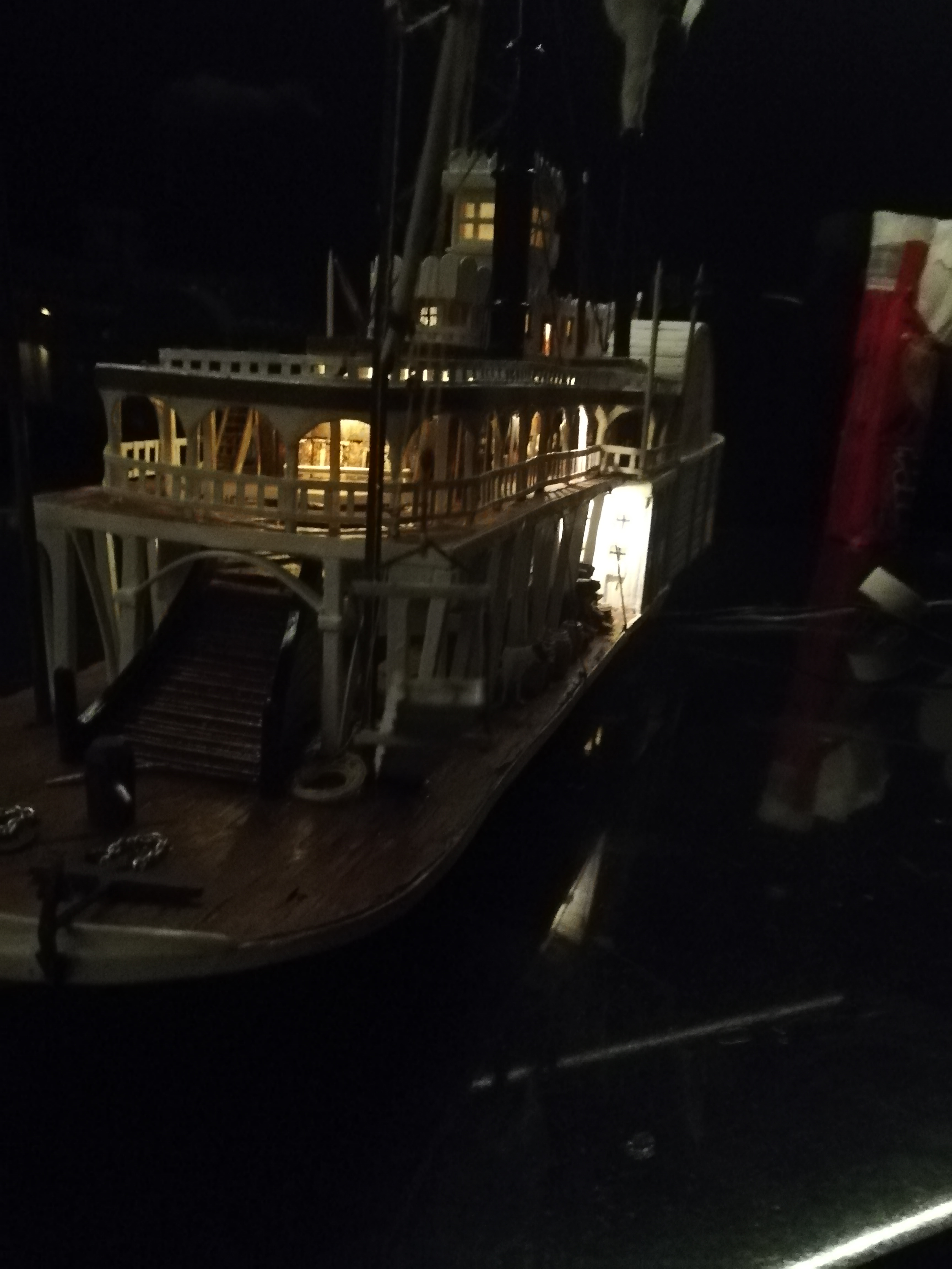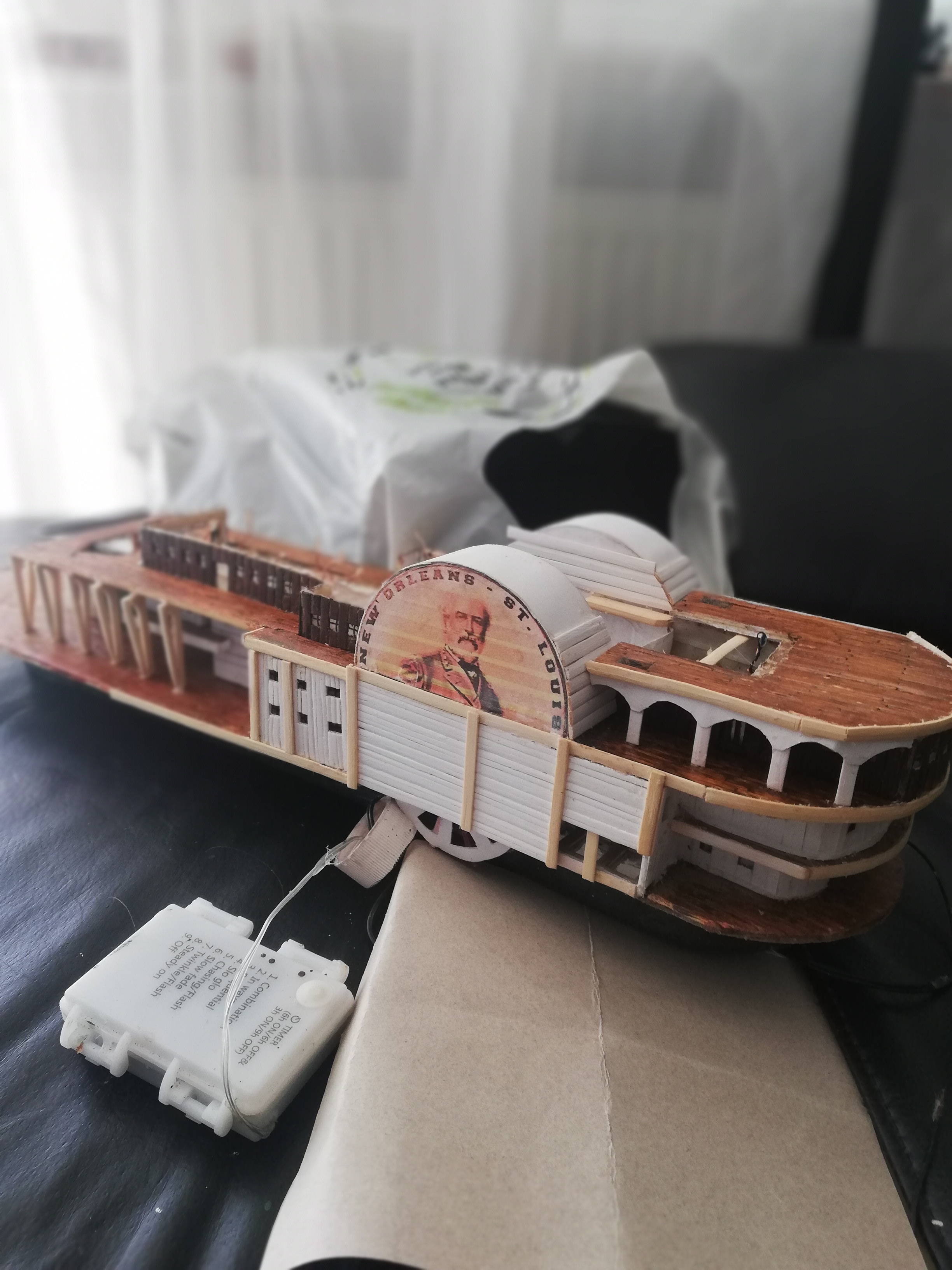 Model zbudowany z niczego (patyczki do kawy, zapałki). Posiada działający silniczek elektryczny do kół łopatkowych oraz pełne oświetlenie LED."