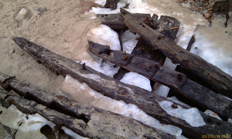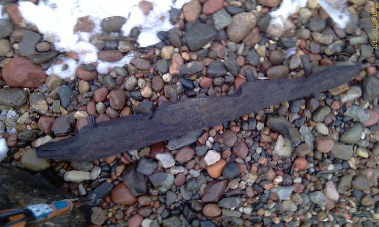 Jak się tak chodzi po plaży, to czasem można znaleźć coś ciekawego. Na razie zamieszczam tylko zdjęcia in situ przesłane mi przez znalazcę, a informacje o tym wraku zamieszczę wkrótce.