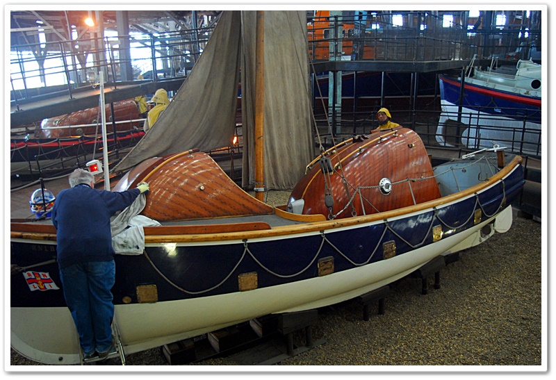Kilka zdjęć z ekspozycji łodzi ratowniczych, uzywanych na wybrzeżach Anglii w różnych okresach XXw.